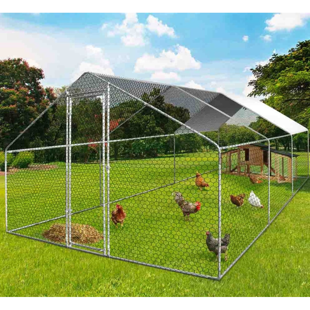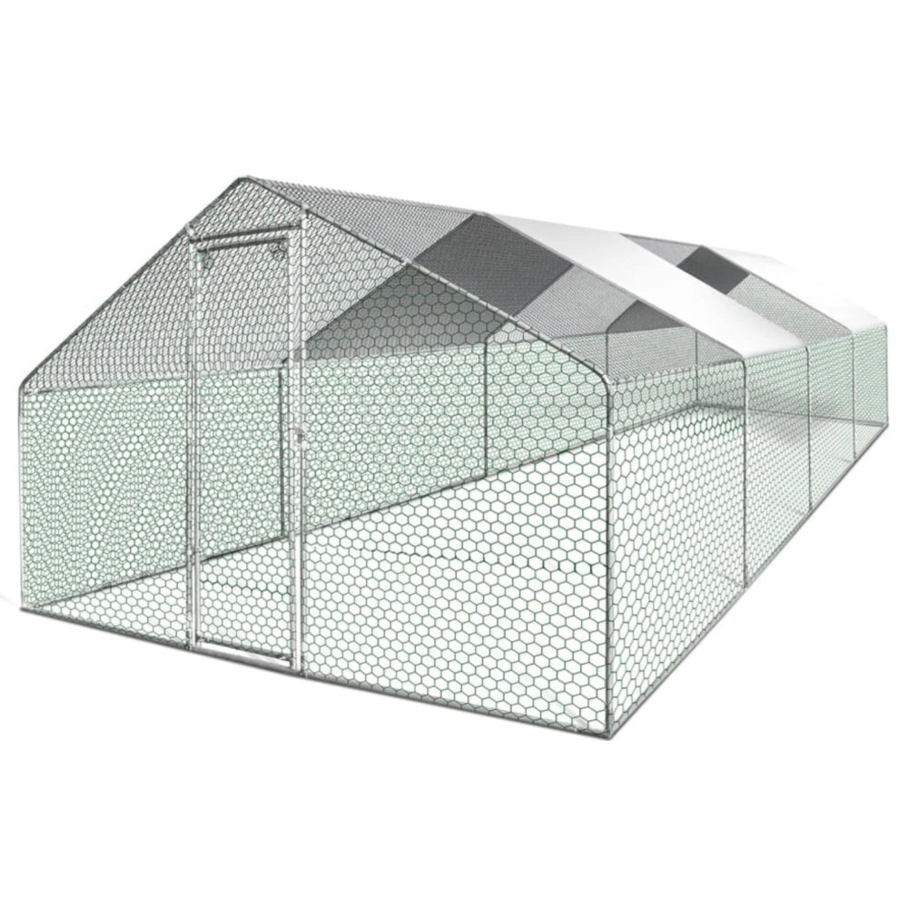 Protégez vos poules des prédateurs. Idéal pour 20 poules. Son voile de protection traité anti-UV offrira un espace d'ombrage à vos poules. Pour un confort maximal, installez un poulailler dans l’enclos pour permettre à vos poules de se mettre à l’abri lors d’intempéries. Pratique : sa porte avec fermeture par loquet empêchera vos poules de sortir tout en les protégeant des prédateurs. À monter soi-même.