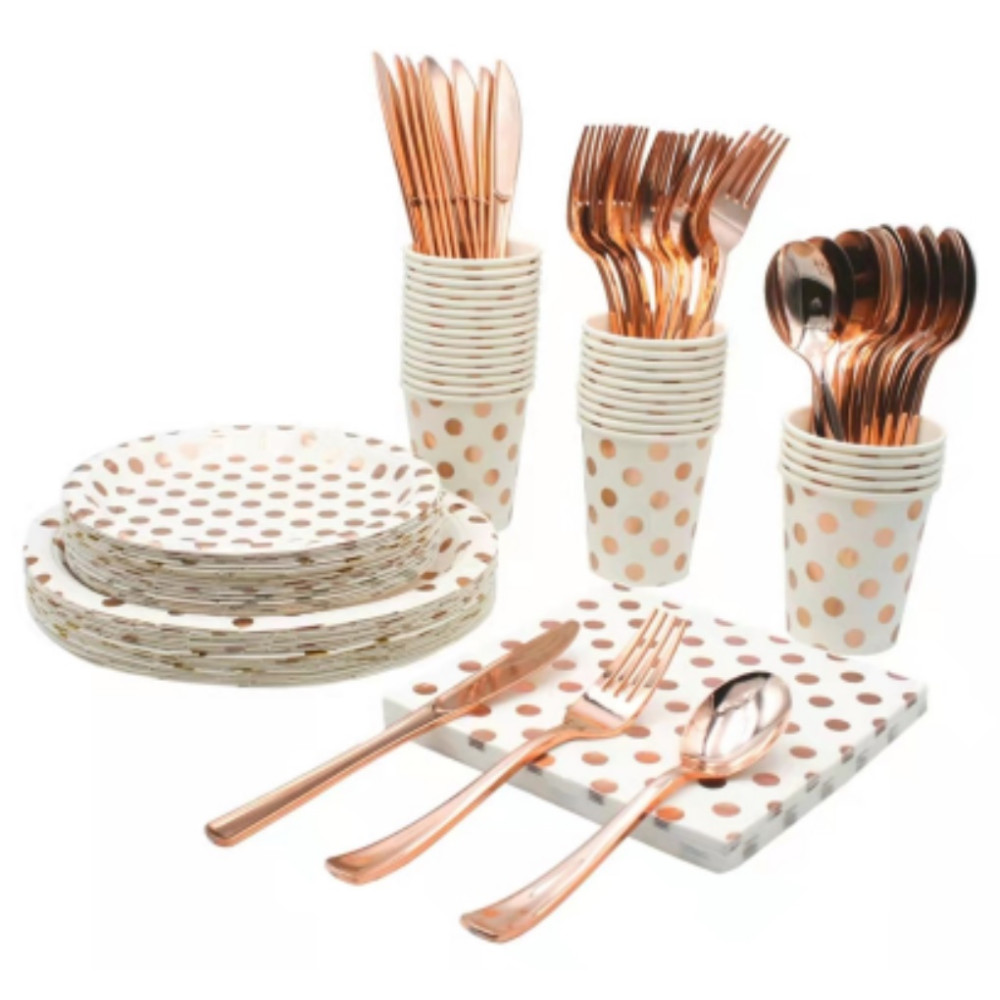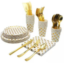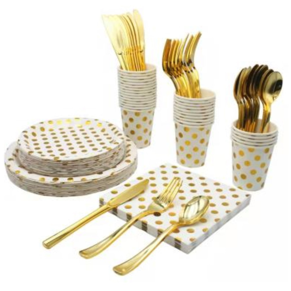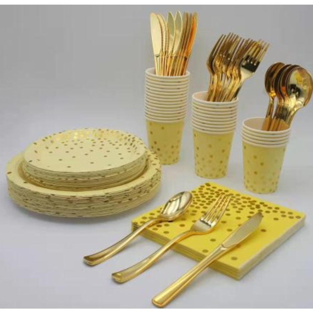 Serviettes de table en papier impression pois dores- argentes, rose gold, jaune, rouge, rose paquet de 20.