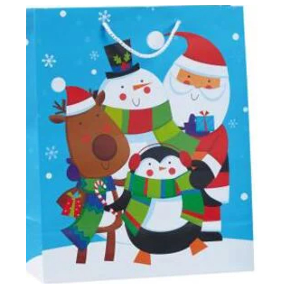 Sac cadeau Noël famille - Taille L - En papier brillant - Ce produit n'est pas un jouet - Dimensions de l’article : L26 x l12 x h32 cm.