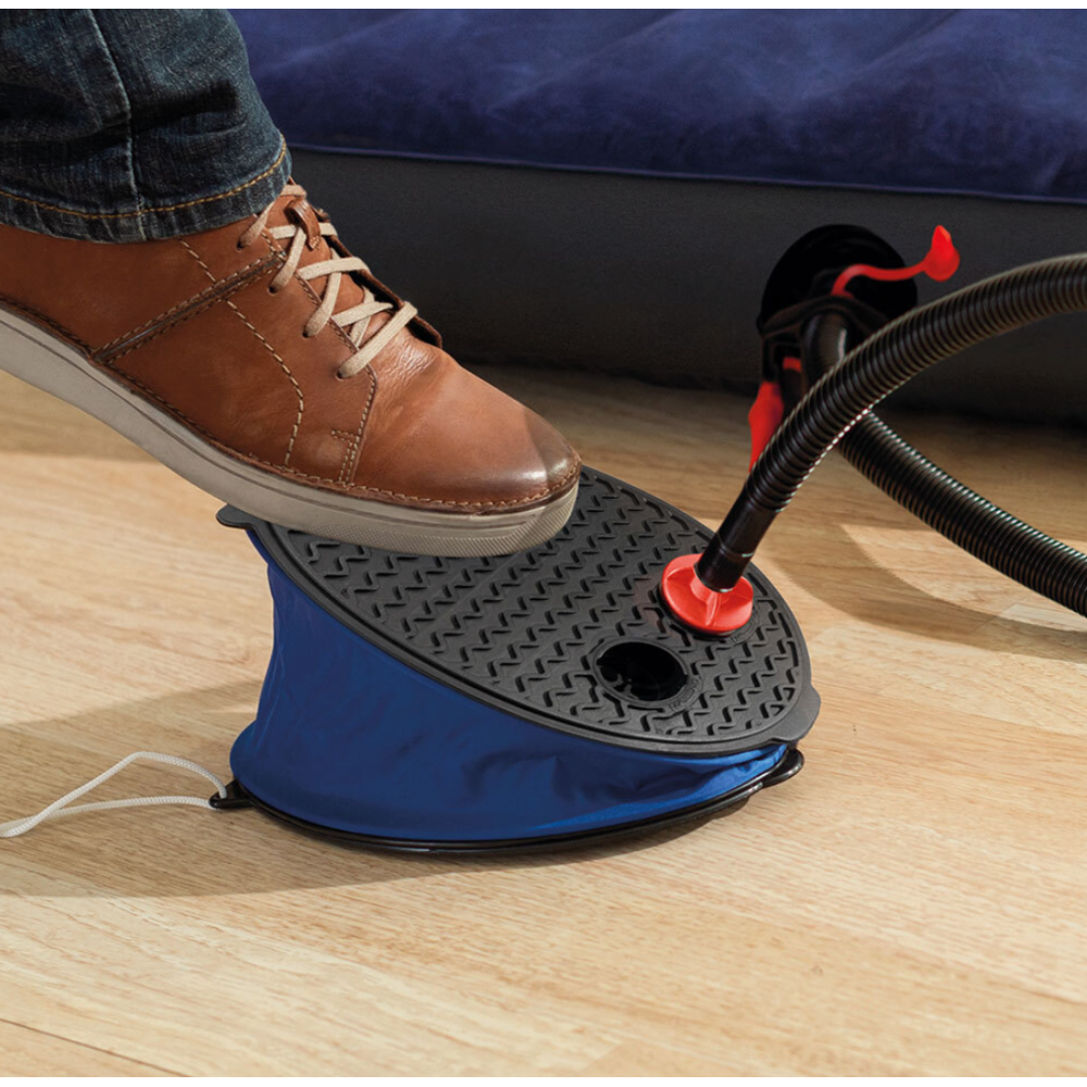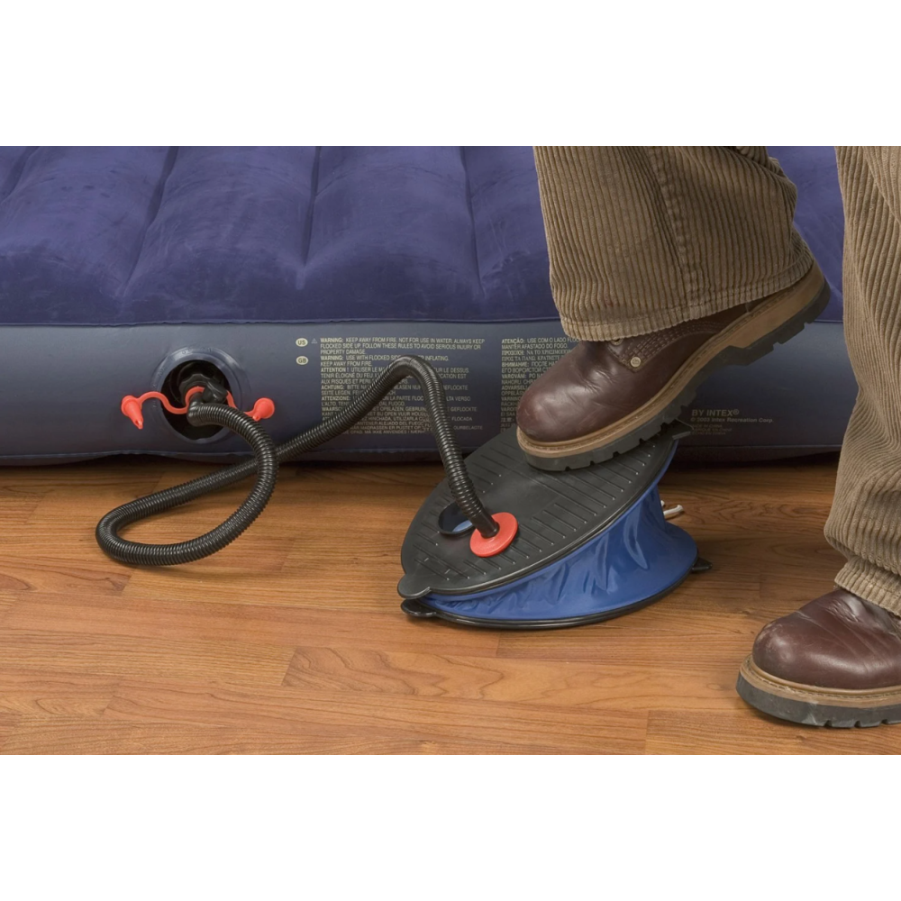 Gonfleur à pied Intex indiqué pour gonfler rapidement les équipements gonflables comme les bouées ou les matelas - Affiche un design compact et facile à transporter - Inclut 2 fonctions : gonflage et dégonflage - Fourni avec 2 embouts adaptables pour une utilisation plus polyvalente - Conçu avec un tuyau flexible qui permet facilement d’accéder aux valves difficiles d’accès - Fait 28 cm de diamètre pour un poids de 640 grammes - Propose un système de pompage simplifié juste en pressant la pédale.