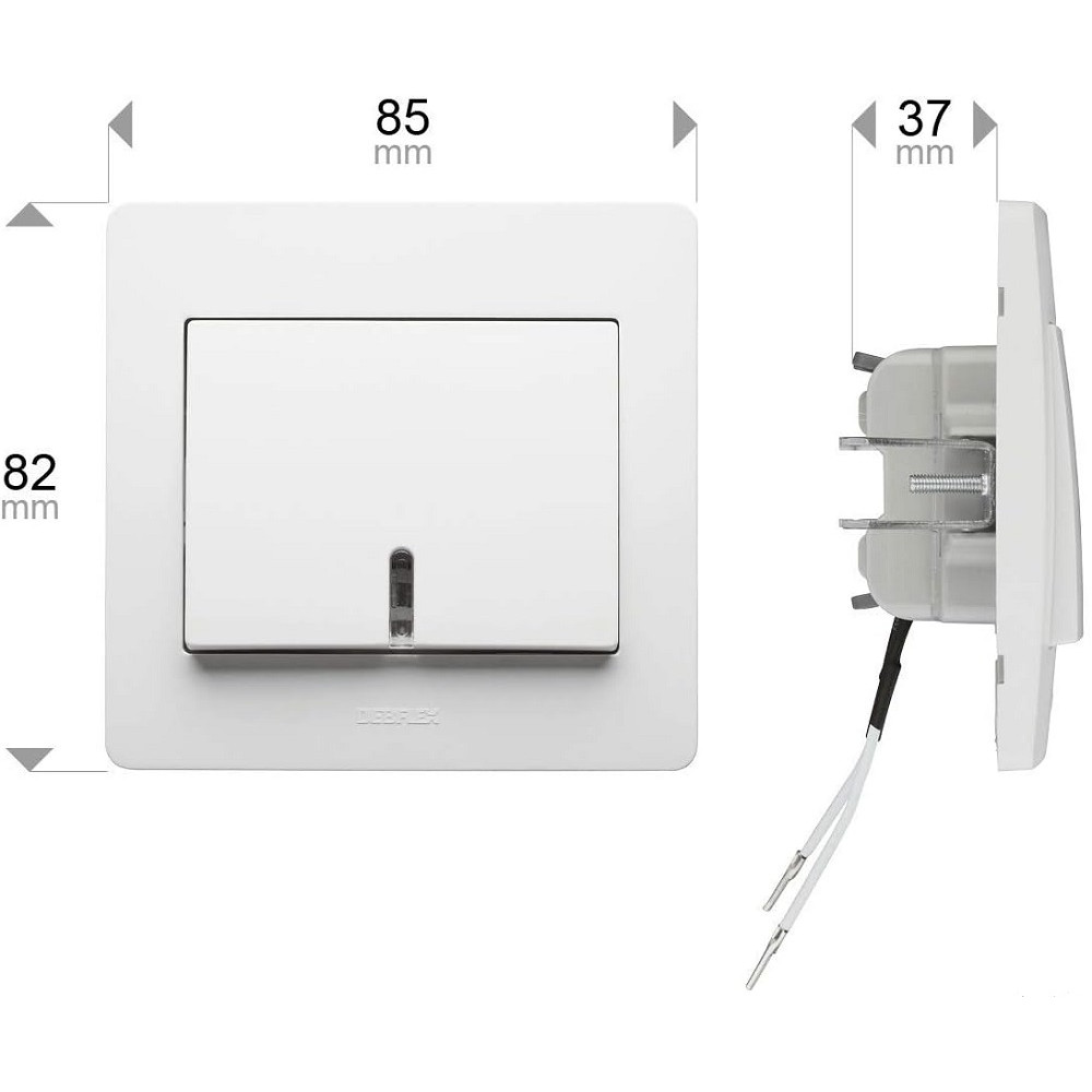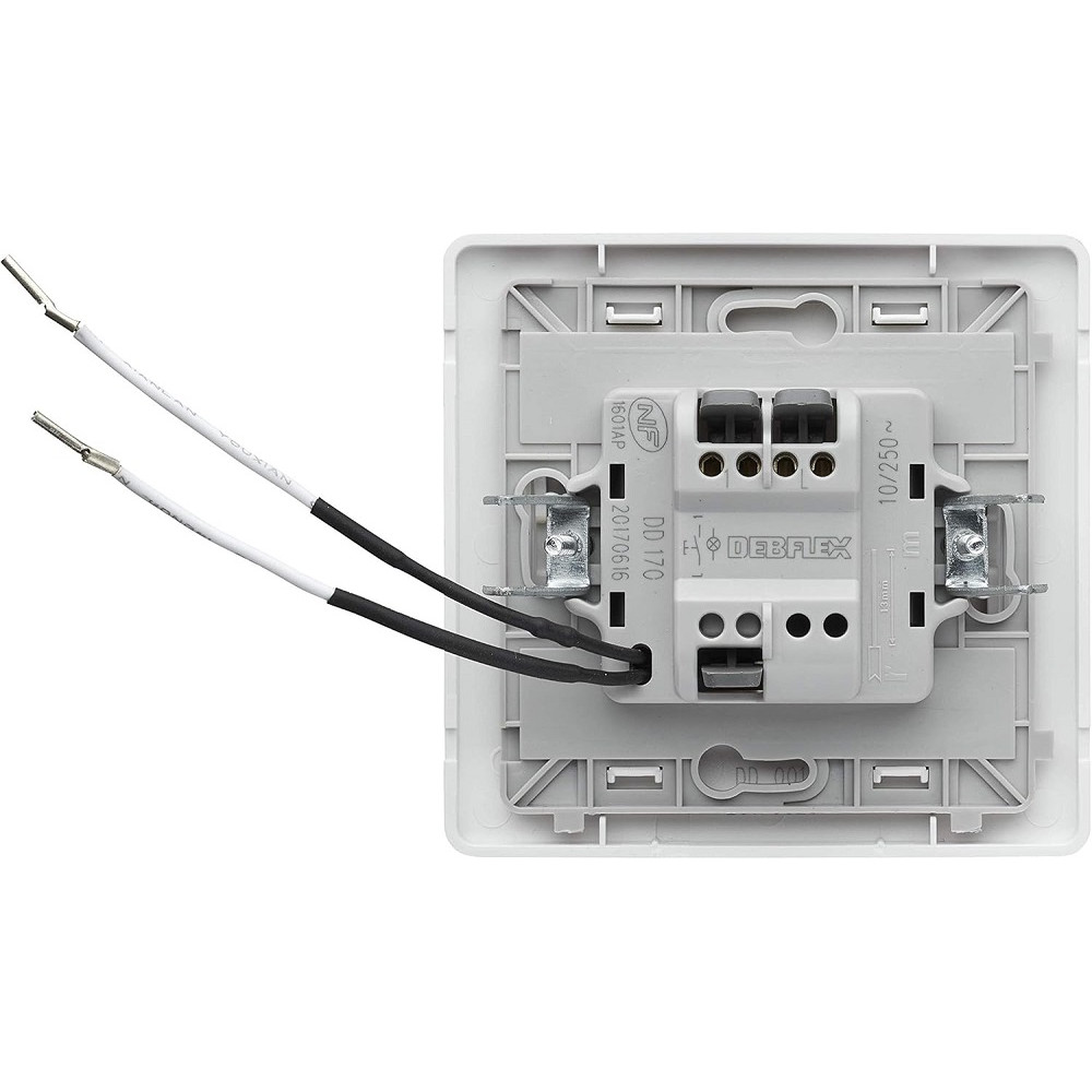 Interrupteur va-et-vient Debflex DEB739110 - Marque : DEBFLEX - Intensité maximale : 10A - Couleur : Blanc - Hauteur : 40 mm -Étanche : Non - Profondeur : 82 mm - Largeur : 40 mm - Indice de protection : IP20 - Mode de pose : Encastré (vis) - Borne automatique : Non - Destination : Intérieur - Tension : 250V - Objet connecté : Non - Nombre d'unités : 1 - Finition de surface : Mat - Matière principale : Polycarbonate - Poids : 0,056 kg.