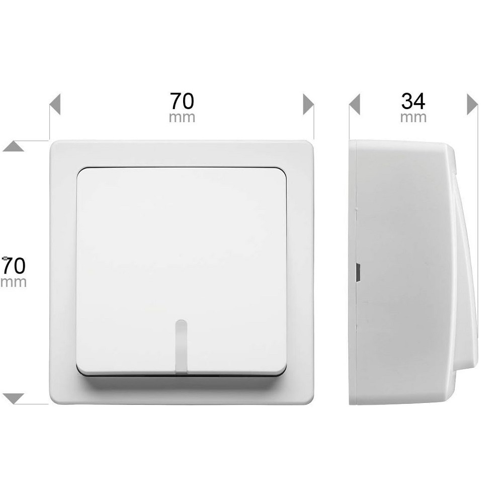 Interrupteur va-et-vient Debflex DEB746800 Blok - Raccordement par bornes automatiques, montage rapide - 1 poste, montage en saillie - 3 bornes automatiques, fixation par vis - Finition : Mat, Couleur : Blanc (RAL) - Dimensions : 70 x 70 x 33,5 mm, Poids : 44,6 g - Matière : ABS, Section : 1,5 mm² - Touche unique, dénudage : 11 mm - IP20, IK02, tenue au feu : 650°C - Courant : 10A, Tension : 250V - 20 000 cycles, tenue diélectrique : 2000V - Certifications : CE, NF, ROHS - EAN (code-barres) : 3142187468000.