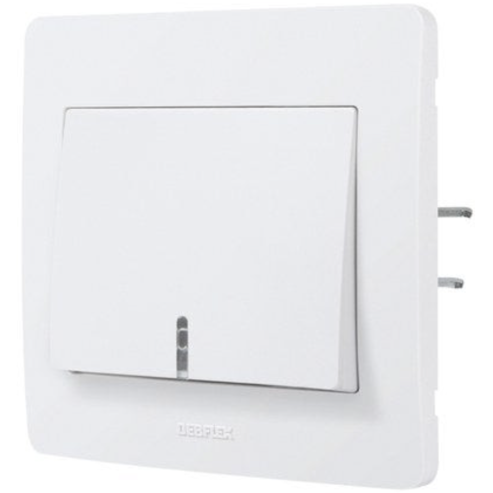 Interrupteur va-et-vient Debflex DEB739110 - Marque : DEBFLEX - Intensité maximale : 10A - Couleur : Blanc - Hauteur : 40 mm -Étanche : Non - Profondeur : 82 mm - Largeur : 40 mm - Indice de protection : IP20 - Mode de pose : Encastré (vis) - Borne automatique : Non - Destination : Intérieur - Tension : 250V - Objet connecté : Non - Nombre d'unités : 1 - Finition de surface : Mat - Matière principale : Polycarbonate - Poids : 0,056 kg.
