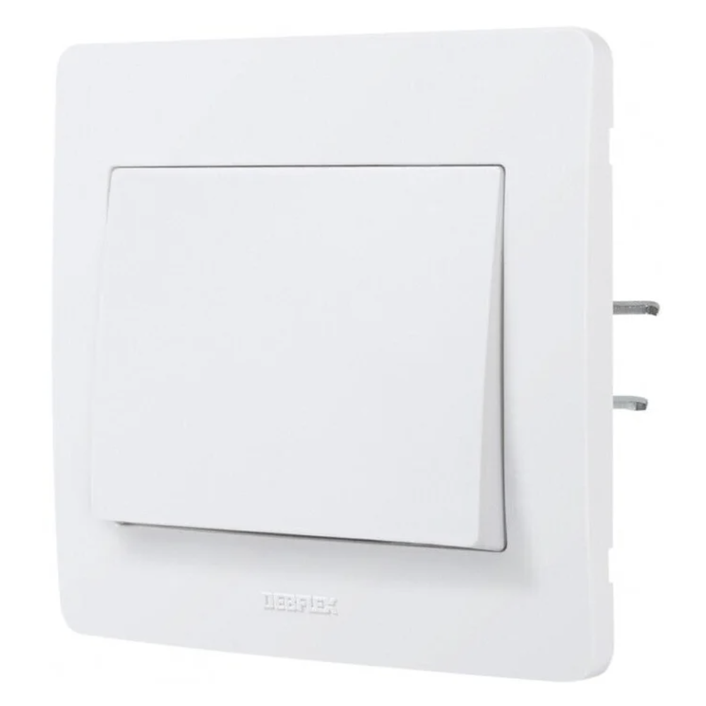 Interrupteur va-et-vient Debflex DEB739110 - Marque : DEBFLEX - Intensité maximale : 10A - Couleur : Blanc - Hauteur : 40 mm -Étanche : Non - Profondeur : 82 mm - Largeur : 40 mm - Indice de protection : IP20 - Mode de pose : Encastré (vis) - Borne automatique : Non - Destination : Intérieur - Tension : 250V - Objet connecté : Non - Nombre d'unités : 1 - Finition de surface : Mat - Matière principale : Polycarbonate - Poids : 0,056 kg.