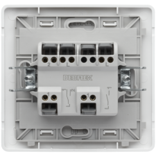 Interrupteur va-et-vient Debflex DEB746800 Blok - Raccordement par bornes automatiques, montage rapide - 1 poste, montage en saillie - 3 bornes automatiques, fixation par vis - Finition : Mat, Couleur : Blanc (RAL) - Dimensions : 70 x 70 x 33,5 mm, Poids : 44,6 g - Matière : ABS, Section : 1,5 mm² - Touche unique, dénudage : 11 mm - IP20, IK02, tenue au feu : 650°C - Courant : 10A, Tension : 250V - 20 000 cycles, tenue diélectrique : 2000V - Certifications : CE, NF, ROHS - EAN (code-barres) : 3142187468000.