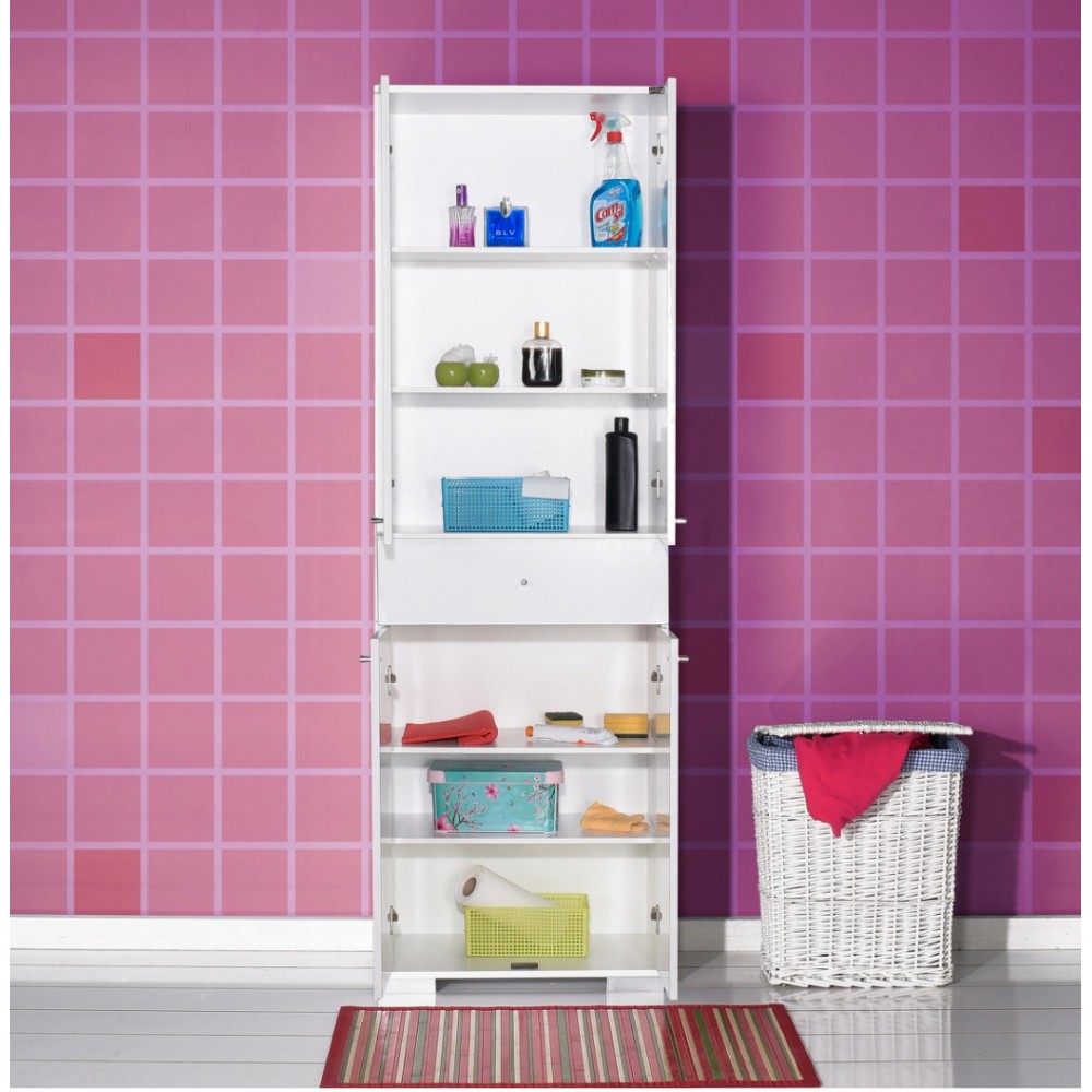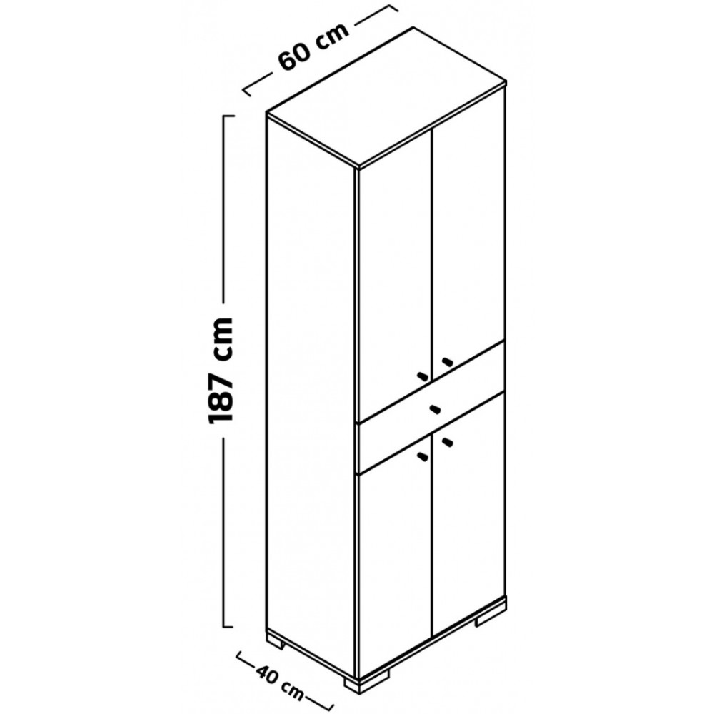 Armoire à usages multiples pour rangement - 100% panneau de particules mélaminé - 2 sections avec portes et 1 tiroir - Poignées avec revêtement en chrome - Design ergonomique - Très facile à monter - Parfait pour la cuisine ou la salle de bain - Couleur : blanc laqué - Dimension : 60x187x40 cm.