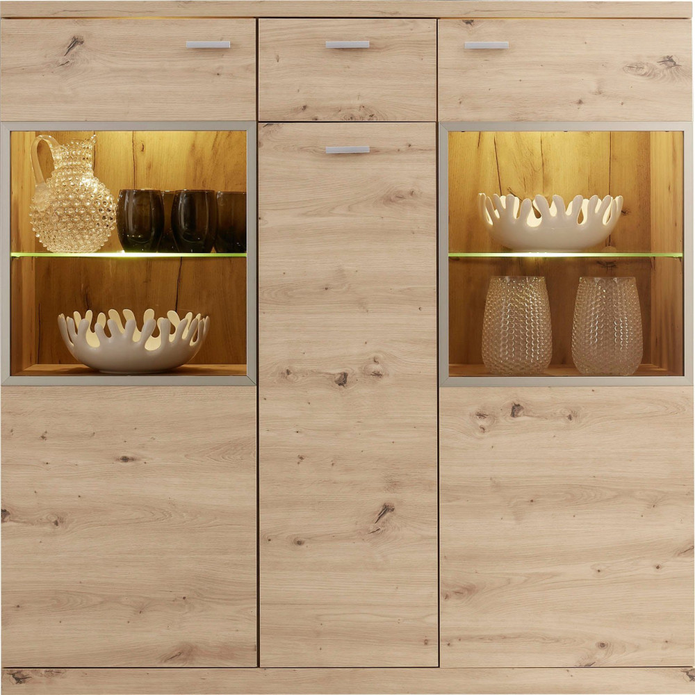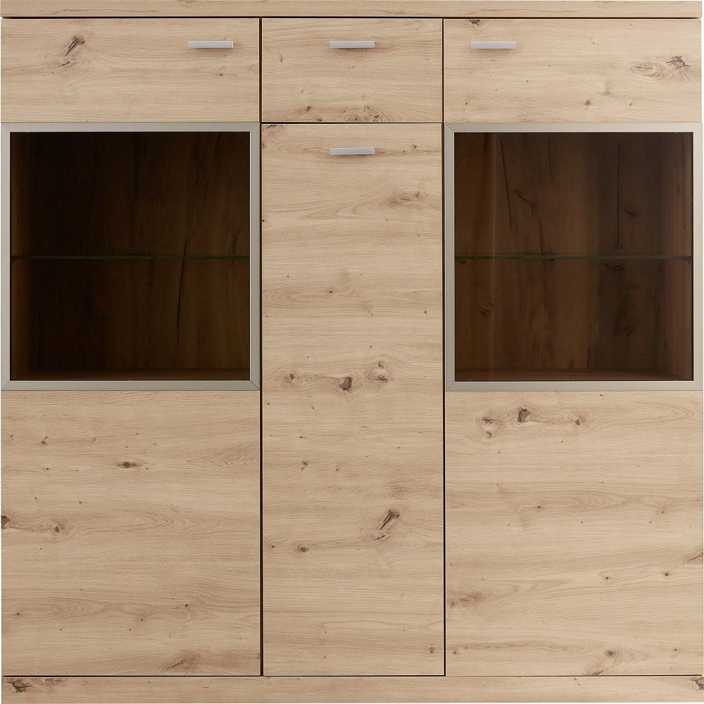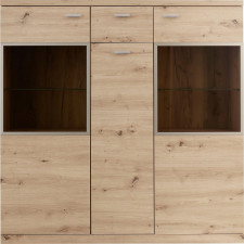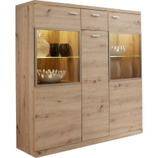 Buffet Echo haut en bois - Avec 1 tiroir et 3 portes - Avec le buffet Echo, vous pouvez mettre un véritable point culminant d'ameublement dans votre maison - Le look élégant est caractérisé par le décor artisanal en chêne - Dimensions :135x135x37cm.