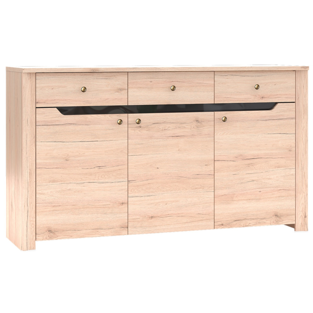 Buffet Omar en bois, avec 3 portes, 3 tiroirs et miroir.