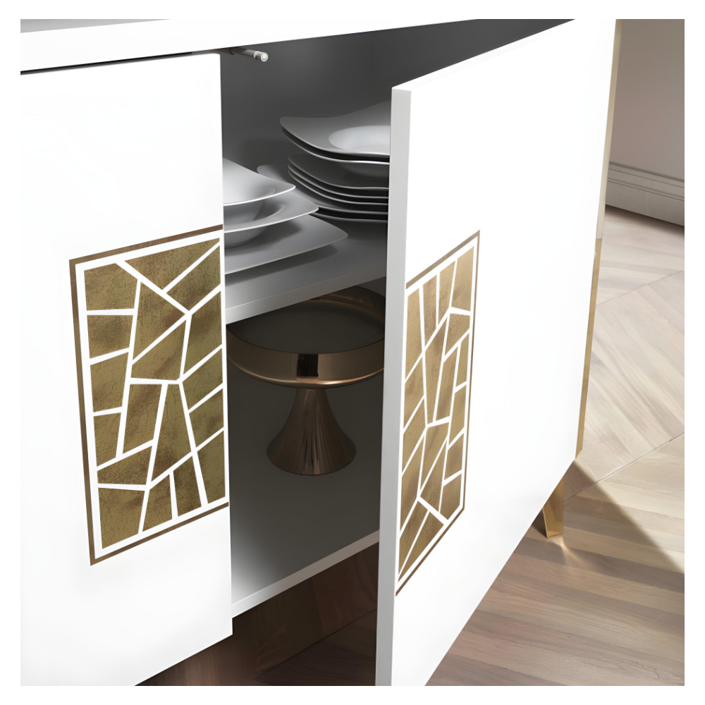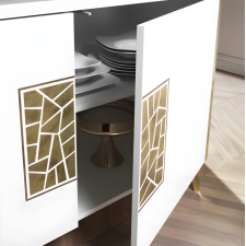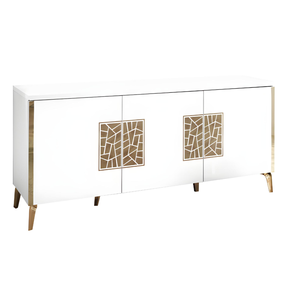 ENFILADE STELLA 3 PORTES LAQUE BLANC ET OR DECOR SERIGRAPHE