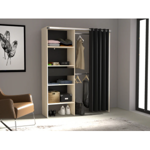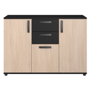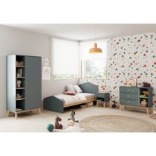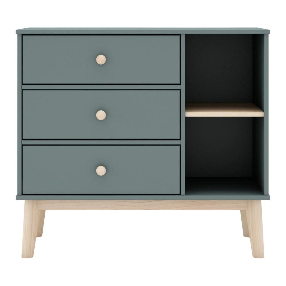 Commode Esteban composée de 3 tiroirs et de 2 niches. Coloris : bleu gris.