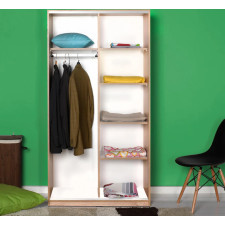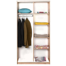 Armoire coulissante - SWD-436-SS-2- Design intérieur grand, profond et utile - Poignée encastrée - 1 tablette fixe et 3 tablettes mobiles larges. Ouvertures silencieux grâce à des raccords de qualité, une construction solide - Dimensions adaptées à une utilisation ergonomique - Pieds larges et esthétiques qui n'endommageront pas le sol - Dimensions : 94 x 182 x 52 cm.