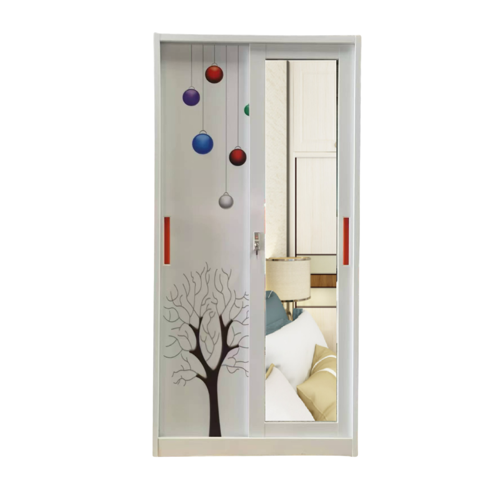 Armoire en fer coulissante 205 avec miroir - Couleur: blanc - Dimensions: 1850 × 900 × 450 mm.