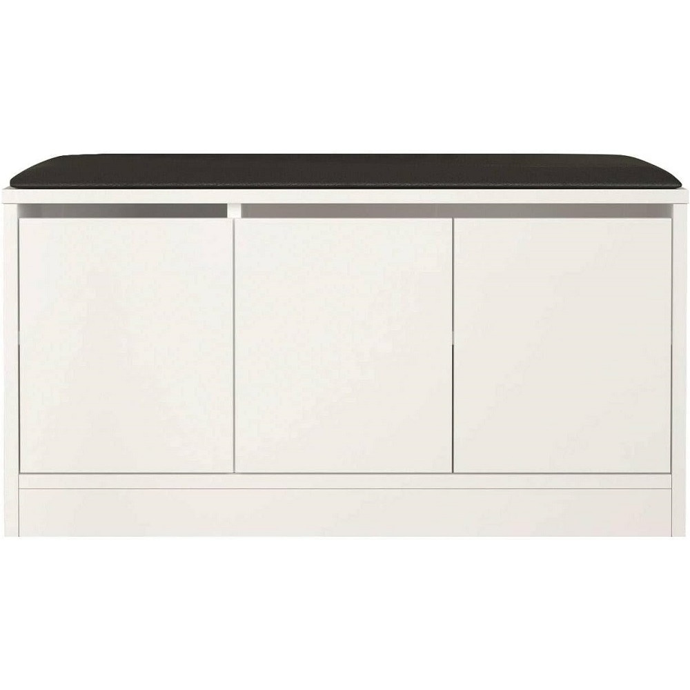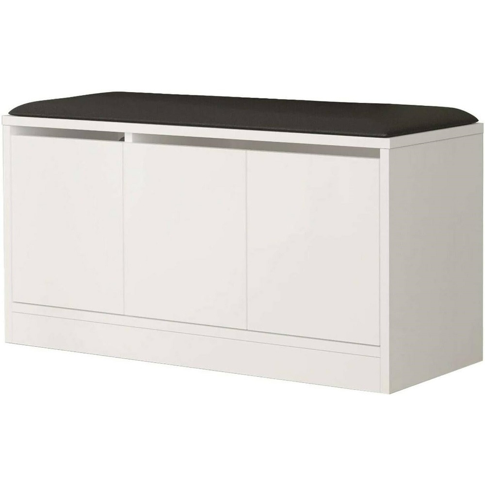 Meuble pour chaussures avec 2 portes et dessus rembourré - Référence : MR2-W - Coloris : Blanc et noir - Notre meuble à chaussures est un moyen élégant et fonctionnel d'organiser votre entrée. Fabriqué en panneau de particules 100 % mélaminé d'une épaisseur de 18 mm, il est doté d'une face supérieure en cuir 100 % PU. Avec des dimensions de 89.6 cm de largeur, 45.8 cm de hauteur et 35.5 cm de profondeur, il est disponible dans une couleur intemporelle - Dimensions : 89.6 x 45.8 x 35.5 cm.