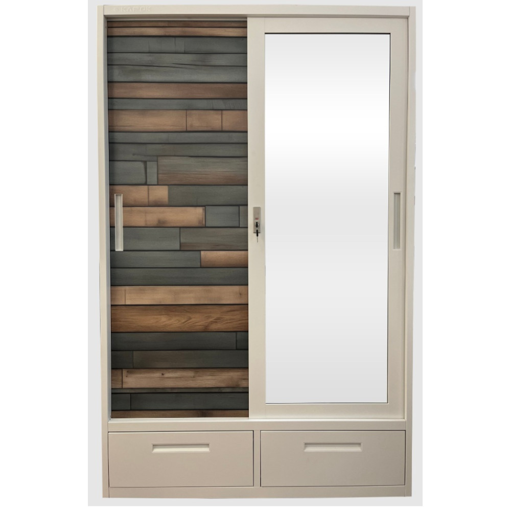 Armoire en métal en Y001 -Coloris: effet lattes et blanc.