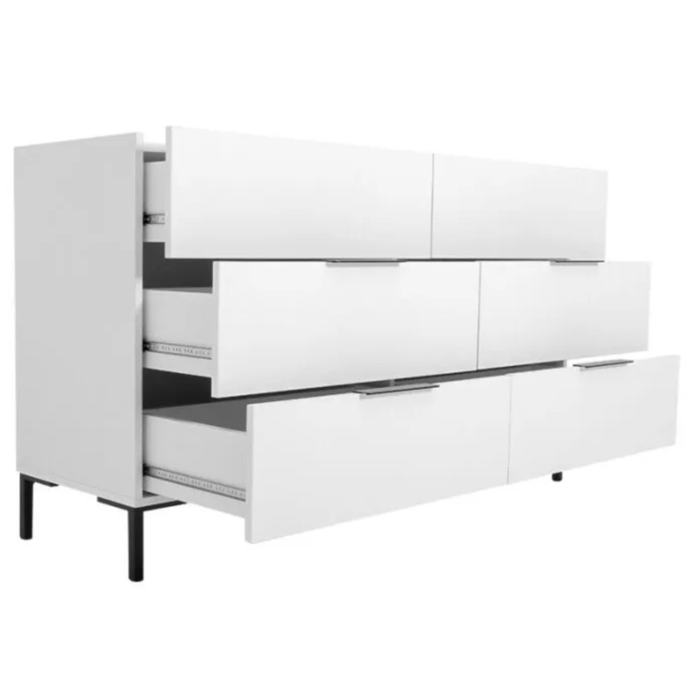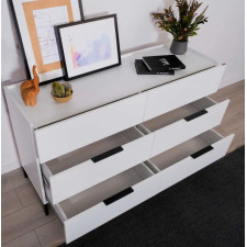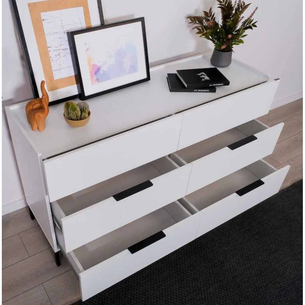 Commode 6 tiroirs, coloris: blanc - SFN-1760-DD-1- Dimensions: 140x81x44cm.
