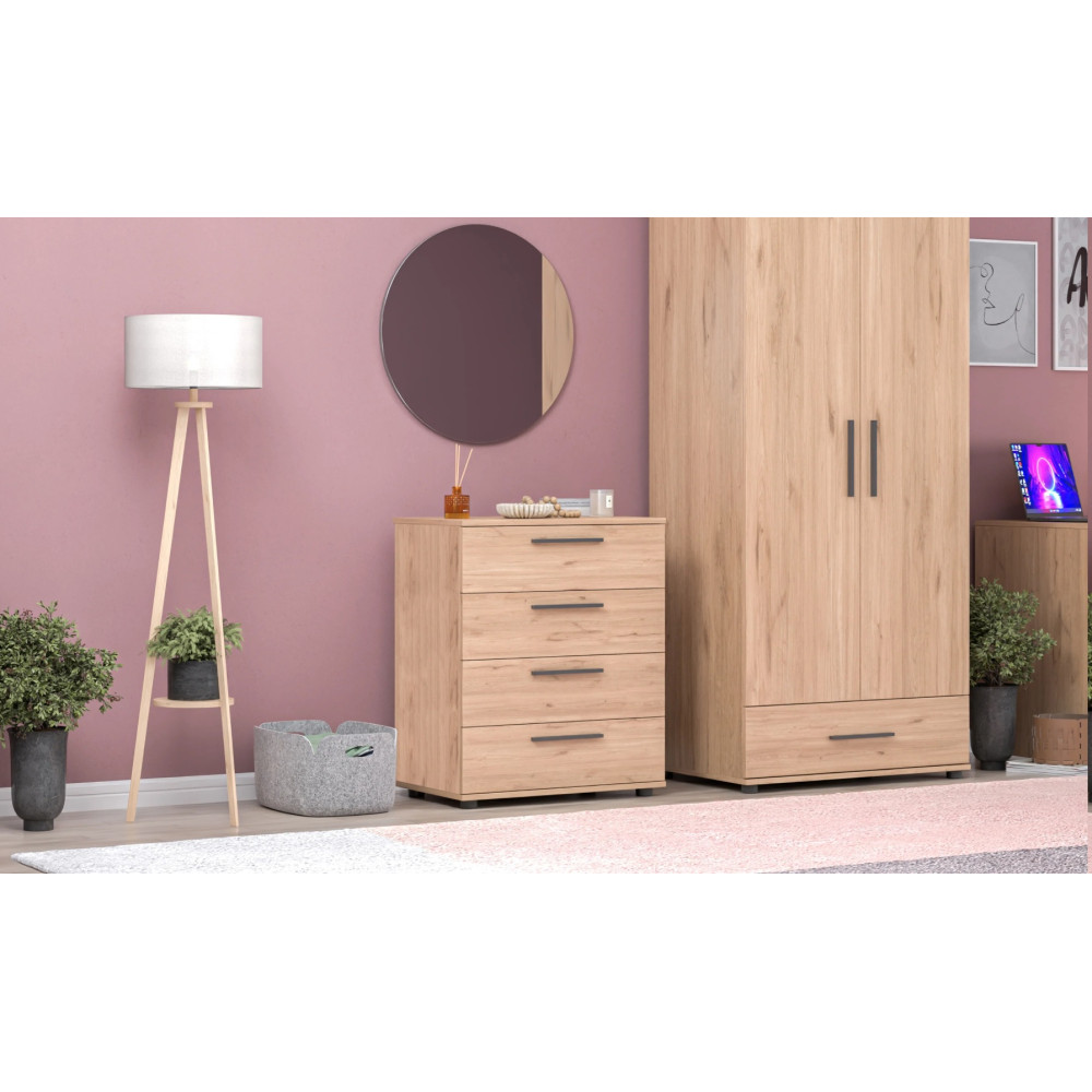 Commode à 4 tiroirs, en papier décor effet bois de chêne - SFN-604-FF-1.