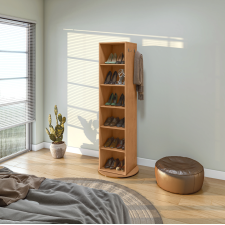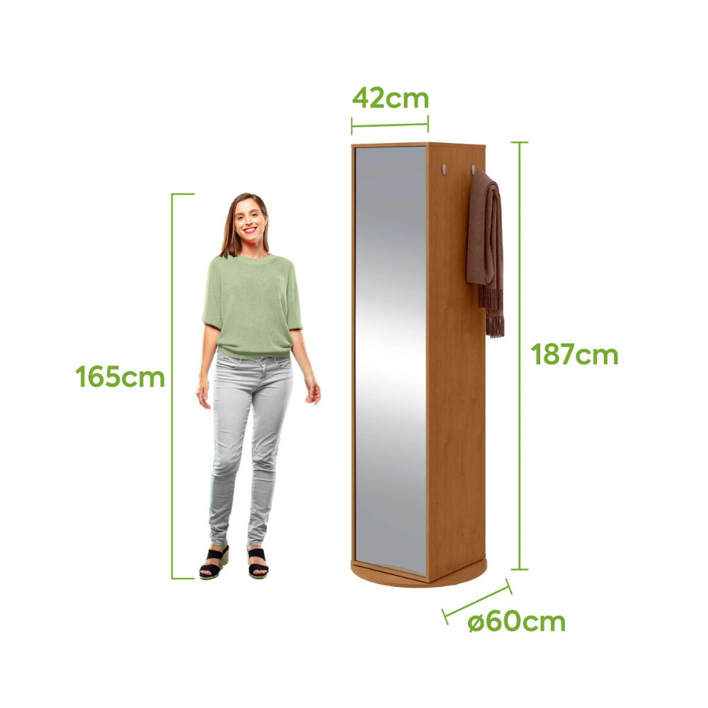 Armoire de rangement DY1-WK, idéale pour la salle de bain, la buanderie ou les petits espaces. Dimensions : 50,4 x 35,7 x 165,05 cm (L x P x H), avec pieds surélevés de 10 cm pour faciliter le nettoyage du sol. Son design moderne associe une finition bois naturel et une structure sobre. À l’intérieur, plusieurs étagères pratiques permettent de ranger serviettes, produits ménagers et accessoires, tout en gardant un espace vertical pour les objets longs. Une solution de rangement élégante, stable et astucieuse au quotidien.