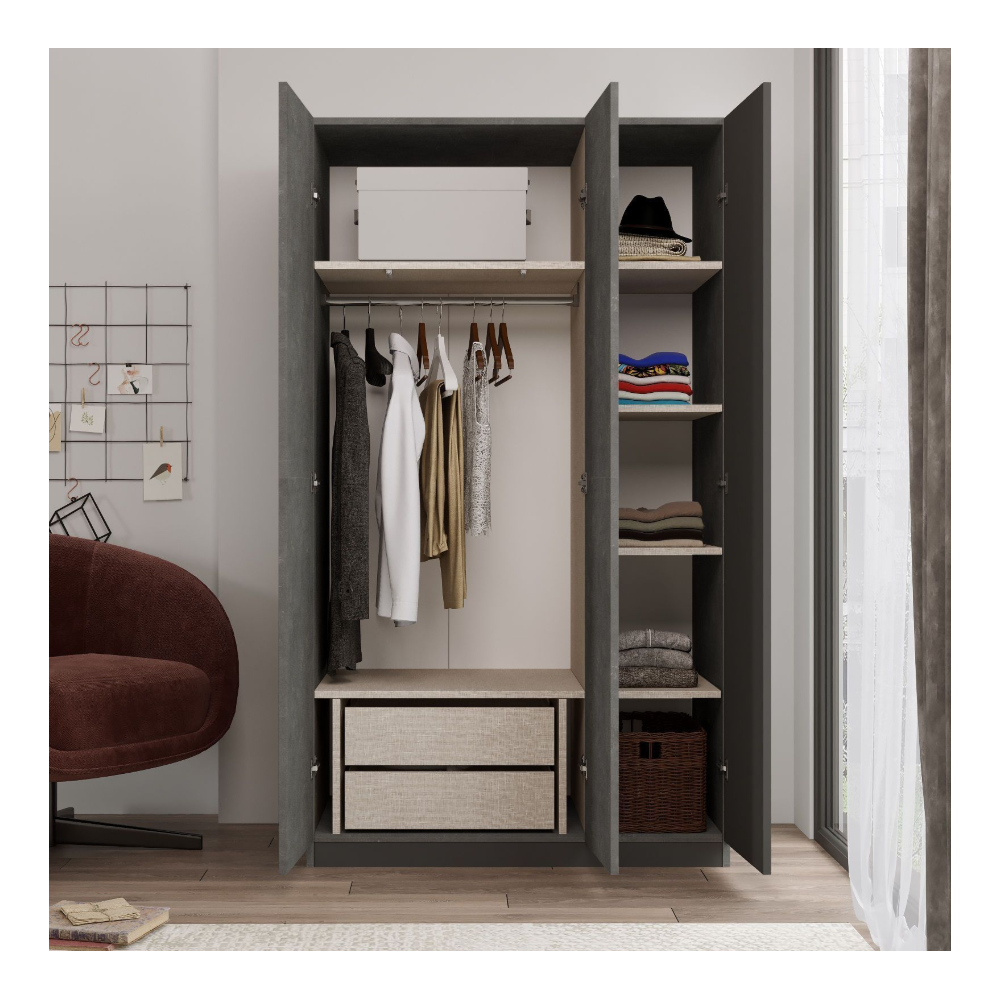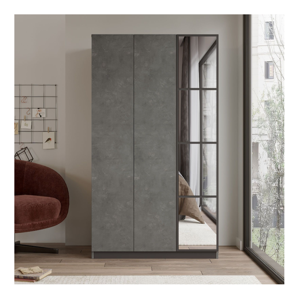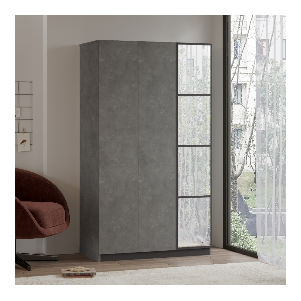 Armoire Modi YC WR00908-MP - Couleur : gris sombre - A poser dans un bureau ou une chambre à coucher - Intègre des étagères de rangement pour disposer des dossiers, des vêtements, des accessoires et bien d’autres objets - Affiche un design sobre, élégant et dégagé avec des poignées directement intégrées dans les portes - Posée sur une base pleine qui garantit sa stabilité en tout temps - Dimensions de l’armoire : 1176 cm de long, 500 cm de large et 2070 cm de haut.