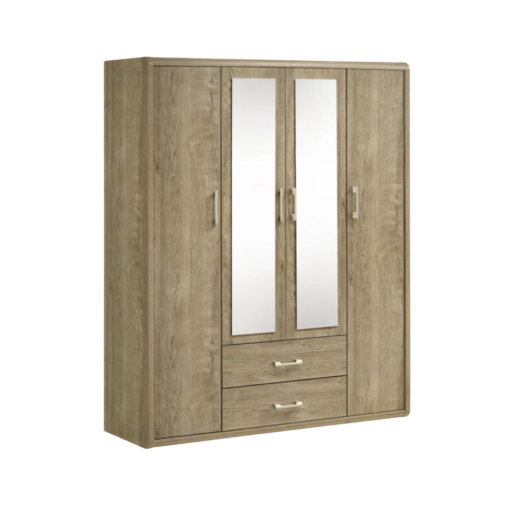 ARMOIRE CATHERINE AF 9379 M AVEC MIROIR 4 PORTES ET 2 TIROIRS CARAMEL OAK