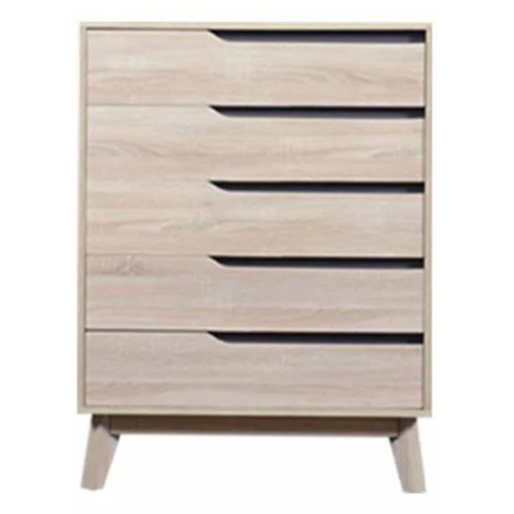 Commode FL COD0080621-MP - Fabriquée avec une structure en panneau de particules MDF - Embarque 5 tiroirs creux avec des poignées intégrées sur le côté - Affiche un design original avec un coloris - Monté sur 4 pattes pour une stabilité optimale - S’installe en pose libre près d’un lit, dans une salle de séjour ou dans un bureau - Dimensions de la commode : 804 cm de long, 404 cm de large et 1074 cm de haut.