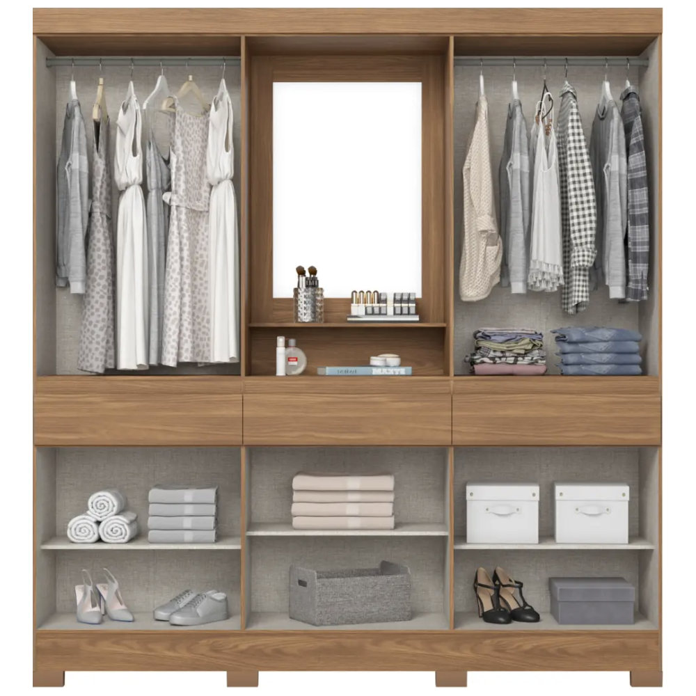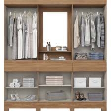 Armoire Hana WR1508MP-HO - À disposer idéalement dans une chambre à coucher - Montée sur 4 pattes servant de support au meuble - Intègre 4 étagères internes et un tiroir bas pour le rangement du linge ou d’accessoires divers - Embarque un espace avec une tringle pour l’accrochage des vêtements sur cintre - Dispose de 3 portes fermant le meuble pour une sécurisation optimale des effets rangés dans le meuble - Dimensions exactes de l’armoire : 110 cm de long, 500 cm de large et 1970 cm de haut.