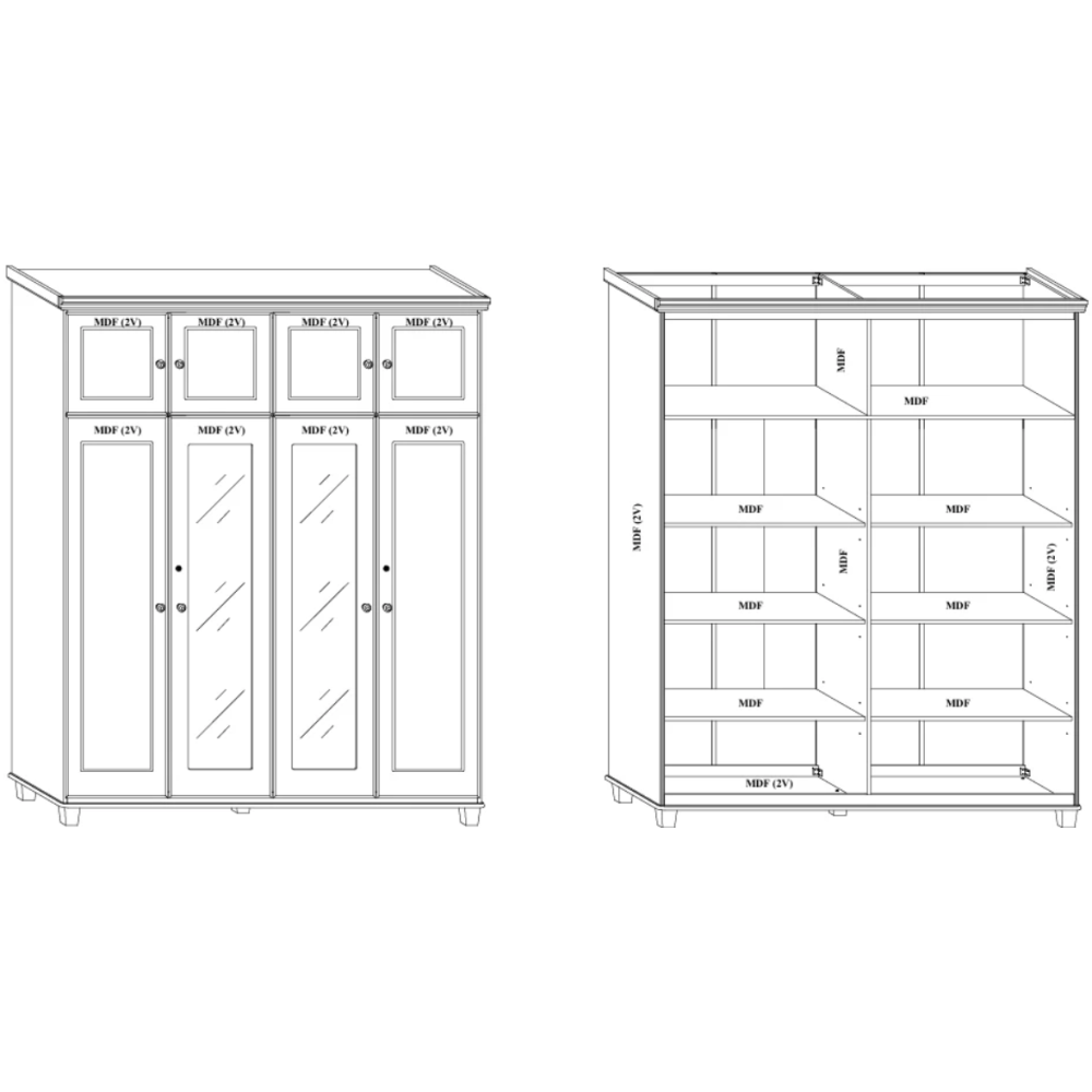 Buffet de cuisine à installer en pose libre dans les cuisines de toutes dimensions - Idéal pour le rangement de la vaisselle et des équipements de cuisine en toute sécurité - Doté de diverses étagères internes pour structurer le classement des différents éléments à ranger - Affiche un design attractif avec 2 battants vitrés à chaque extrémité et une cavité ouverte au centre - Présente des finitions de haute qualité avec des angles nets et une texture lisse sans rayures - Fait 180 cm de haut, 45 cm de profondeur et 180 cm de large.