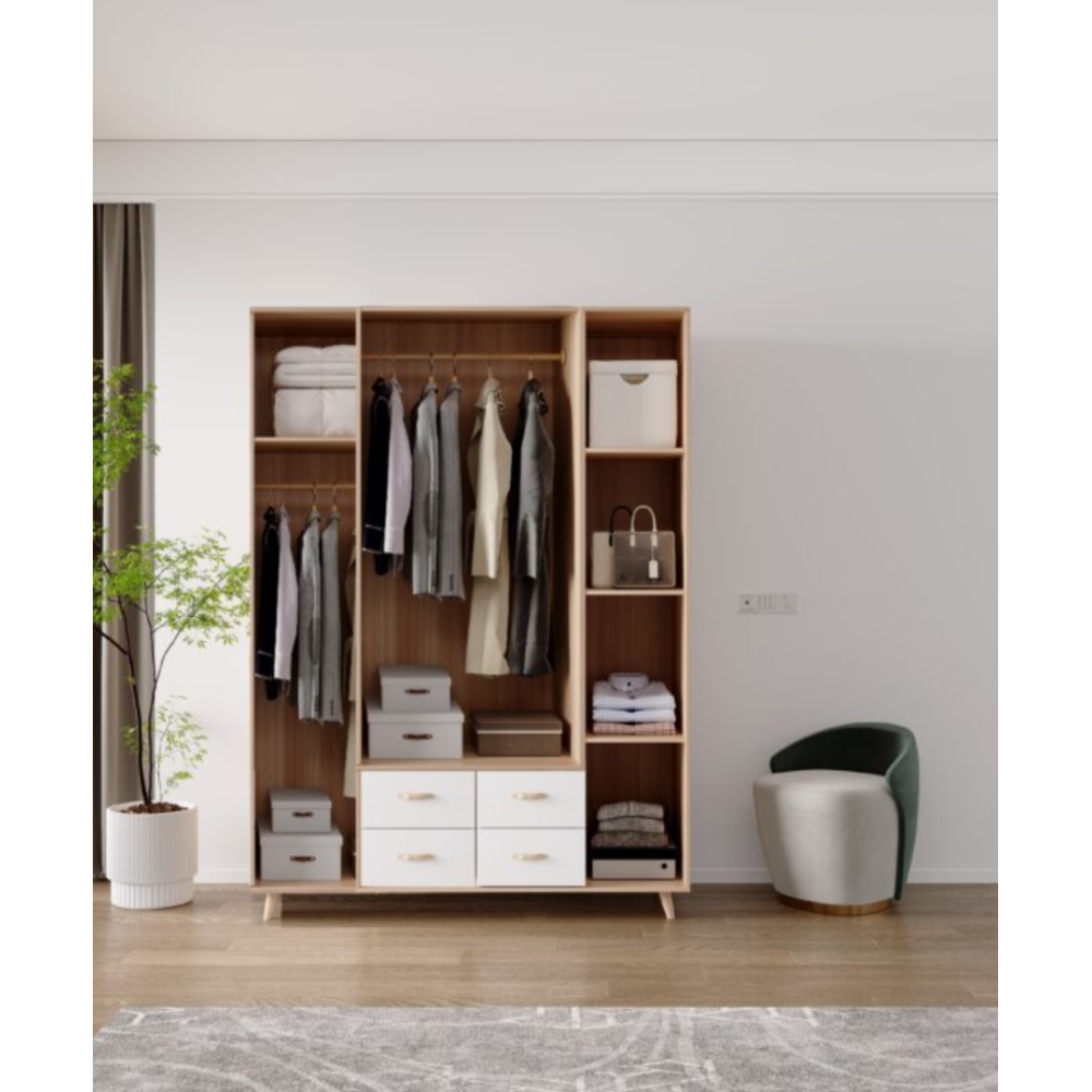 Armoire Hana WR1508MP-HO - À disposer idéalement dans une chambre à coucher - Montée sur 4 pattes servant de support au meuble - Intègre 4 étagères internes et un tiroir bas pour le rangement du linge ou d’accessoires divers - Embarque un espace avec une tringle pour l’accrochage des vêtements sur cintre - Dispose de 3 portes fermant le meuble pour une sécurisation optimale des effets rangés dans le meuble - Dimensions exactes de l’armoire : 110 cm de long, 500 cm de large et 1970 cm de haut.