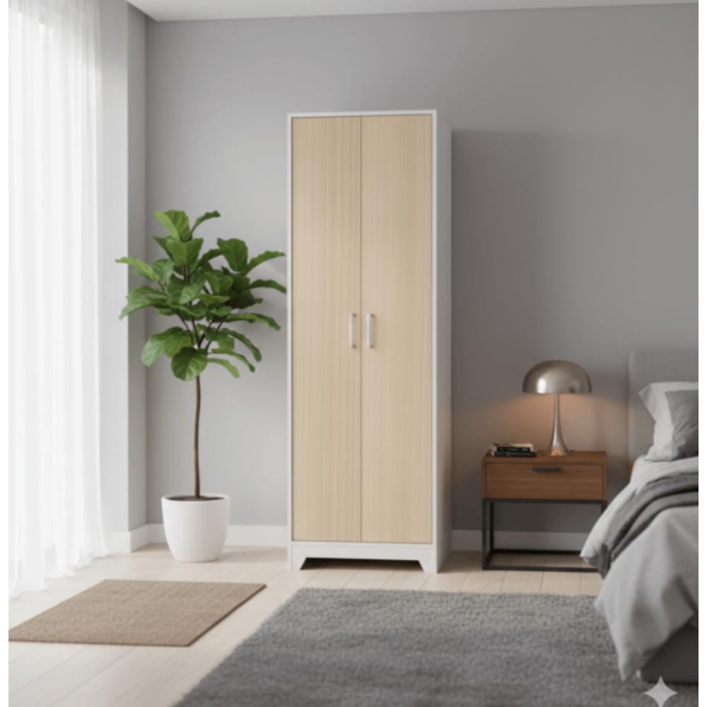 Armoire haute de forme verticale fabriquée en fer mesurant 58 cm de long, 50 cm de profondeur et 195 cm de haut - Equipée de 2 portes qui s’ouvrent vers l’avant et dispose de plusieurs possibilités de rangement interne incluant des étagères et une tringle - Repose sur un support métallique compact qui garantit sa stabilité - Affiche une conception sobre qui convient tant pour une chambre d’enfant, d’adolescent ou d’adulte.