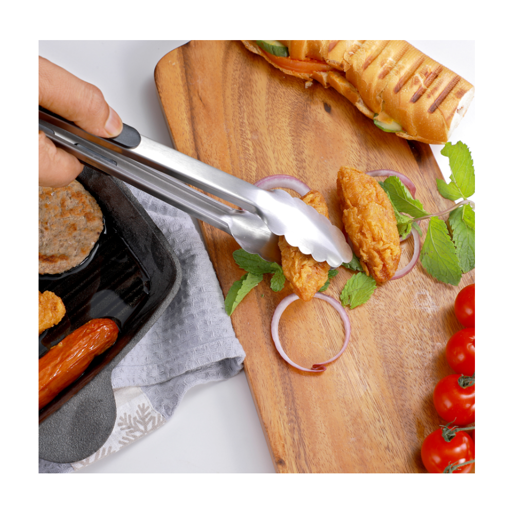 Pince à service ROYALFORD RF2042 30cm - La construction en acier inoxydable de haute qualité offre une durée de vie prolongée - Les rainures pour les doigts vous offrent une prise ferme pour plus de commodité - Les têtes festonnées aux bords incurvés aident à maintenir fermement les aliments - Les poignées sont dotées de trous à travers lesquels vous pouvez les accrocher facilement dans votre cuisine.