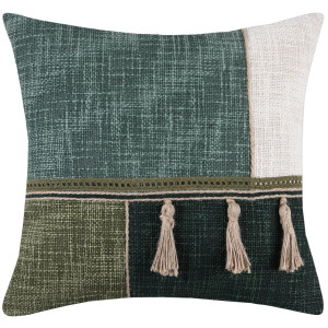 Coussin Vibes - Fait d'un patchwork de différents verts - Agrémenté d'un galon en coton ainsi qu'une petite cordelette et des pompons en jute en finition - Embellit canapés et fauteuils - Déhoussable et lavable en machine à 30° C - Composition : 98% coton, 2 % jute - Dimensions : 40 x 40 cm.