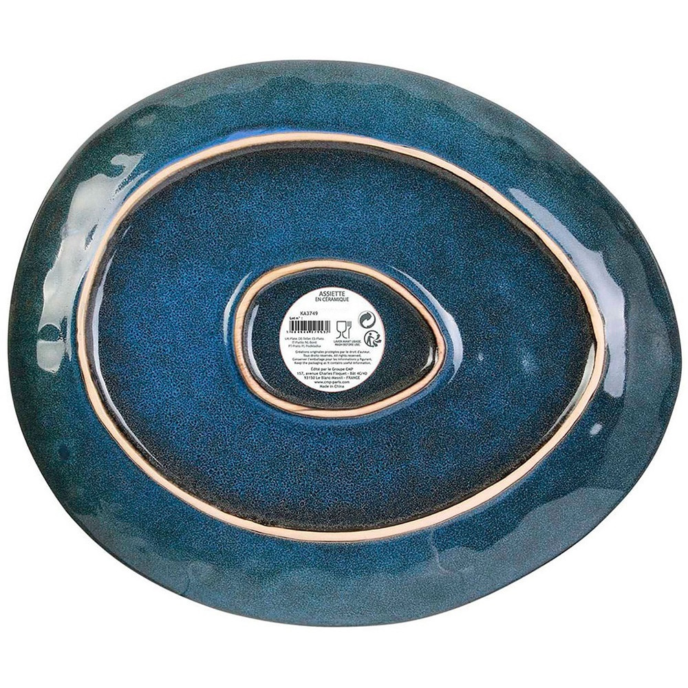 Assiette Galet au grès du temps pour une vaisselle de caractère qui ne ressemble à aucune autre - Apporte style et raffinement sur vos tables et sublime vos plats du quotidien - Est sublimée par un émail brillant - Vaisselle à la fois fonctionnelle et esthétique - Couleur : Bleu - Dimensions : 22 x 18 cm.