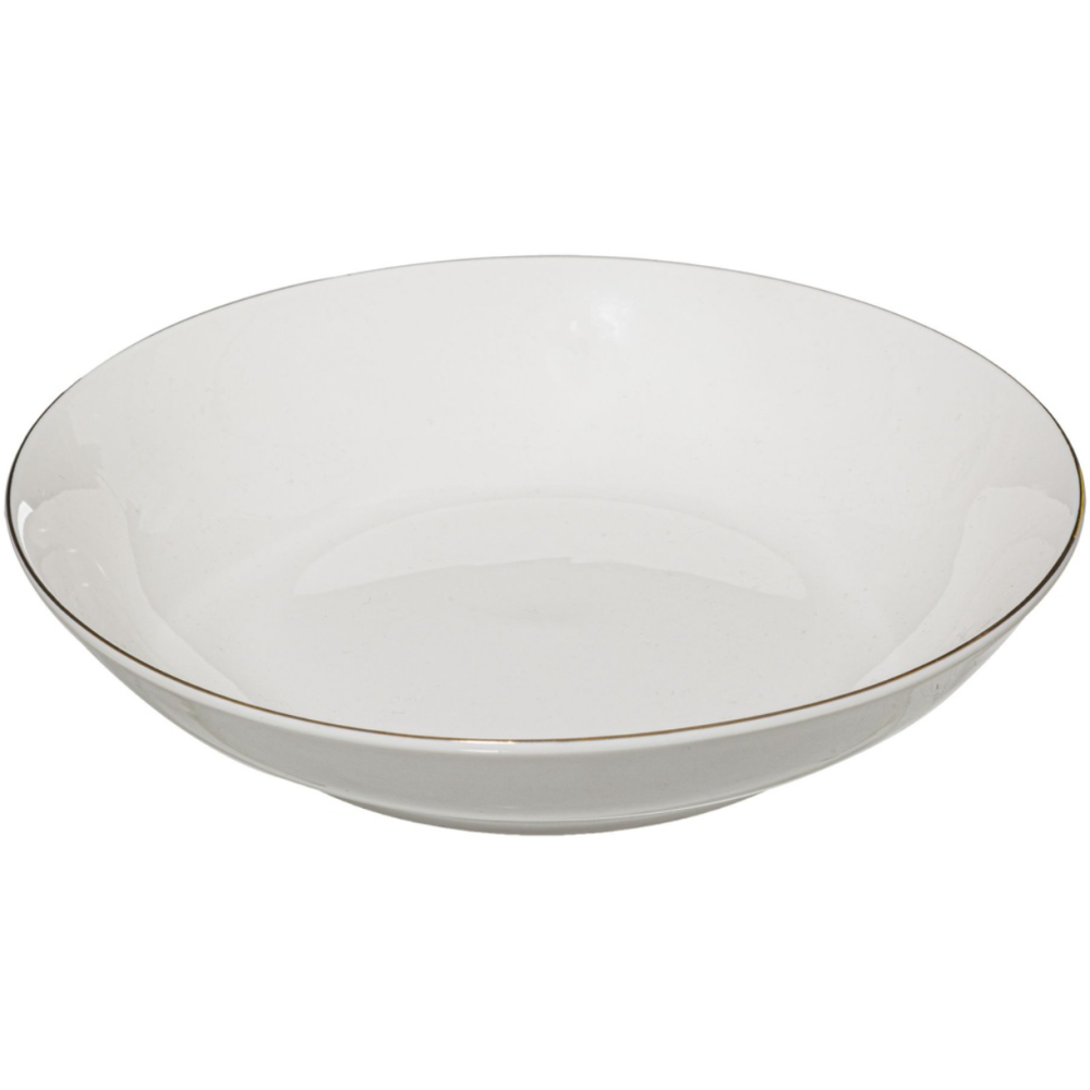 Assiette creuse Petit Salon idéale pour recevoir vos convives - Son style sobre et chic viendra sublimer vos desserts et resplendira sur votre table - Avec son liseré doré, cette assiette en porcelaine pourra être utilisée exceptionnelle pour de grands évènements - Simple et élégante, cette assiette s'adapte à toutes les circonstances - Coloris : Blanc - Dimension : 20 cm de diamètre.