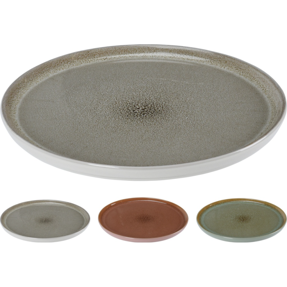 Assiette faïence de forme circulaire - Coloris : 3 couleurs (Gris, Vert et Rouge) - Adaptée pour disposer toutes sortes de repas (légumes, soupes, féculents, viandes) - Dotée d'un rebord permettant de contenir les aliments à texture liquide - Présente une structure lisse à l'intérieur et à l'extérieur - Disponible en trois couleurs, dont le rouge écarlate, le gris terne et le vieux vert - Dimension : 27 cm de diamètre - Vendu à l'unité selon la disponibilité.