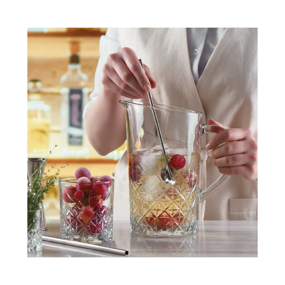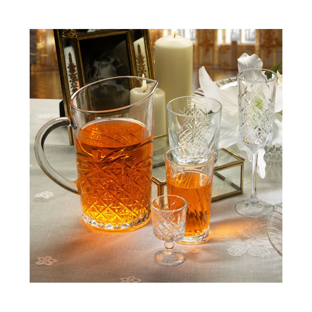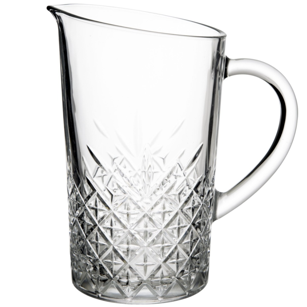 Cet élégant pichet de la collection Timless, fabriqué en verre taillé qui rappelle le cristal, vous permettra de servir de l’eau, de la limonade et d’autre boissons délicieuses en les présentant de manière magni-fique! Diamètre [cm]: 13.4 - Capacité [l]: 1.44 - Hauteur [cm]: 21.7 - Poids [kg]: 1.586 - Matière: Verre - Utiliser : Lave-vaisselle - Coloris: transparent - Motif: géométrique.