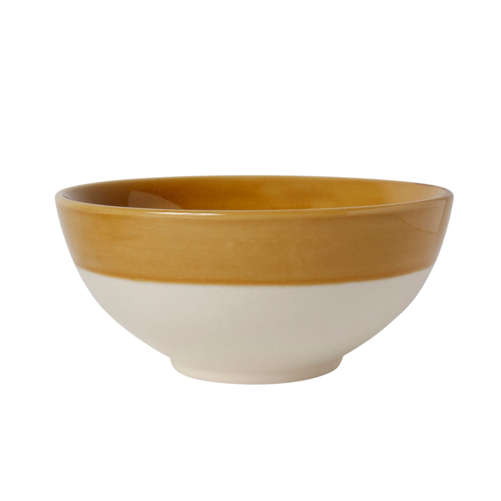 Coupelle bol en grès - Un design sobre et élégant avec cette finition émaillée craquelée, facile à assortir avec votre vaisselle - Pratique au quotidien comme coupelle individuelle pour vos desserts, vos apéritifs, vos veloutés ou pour vos sauces - Matière : grès - Couleur : blanc cassé et jaune - 65cl.