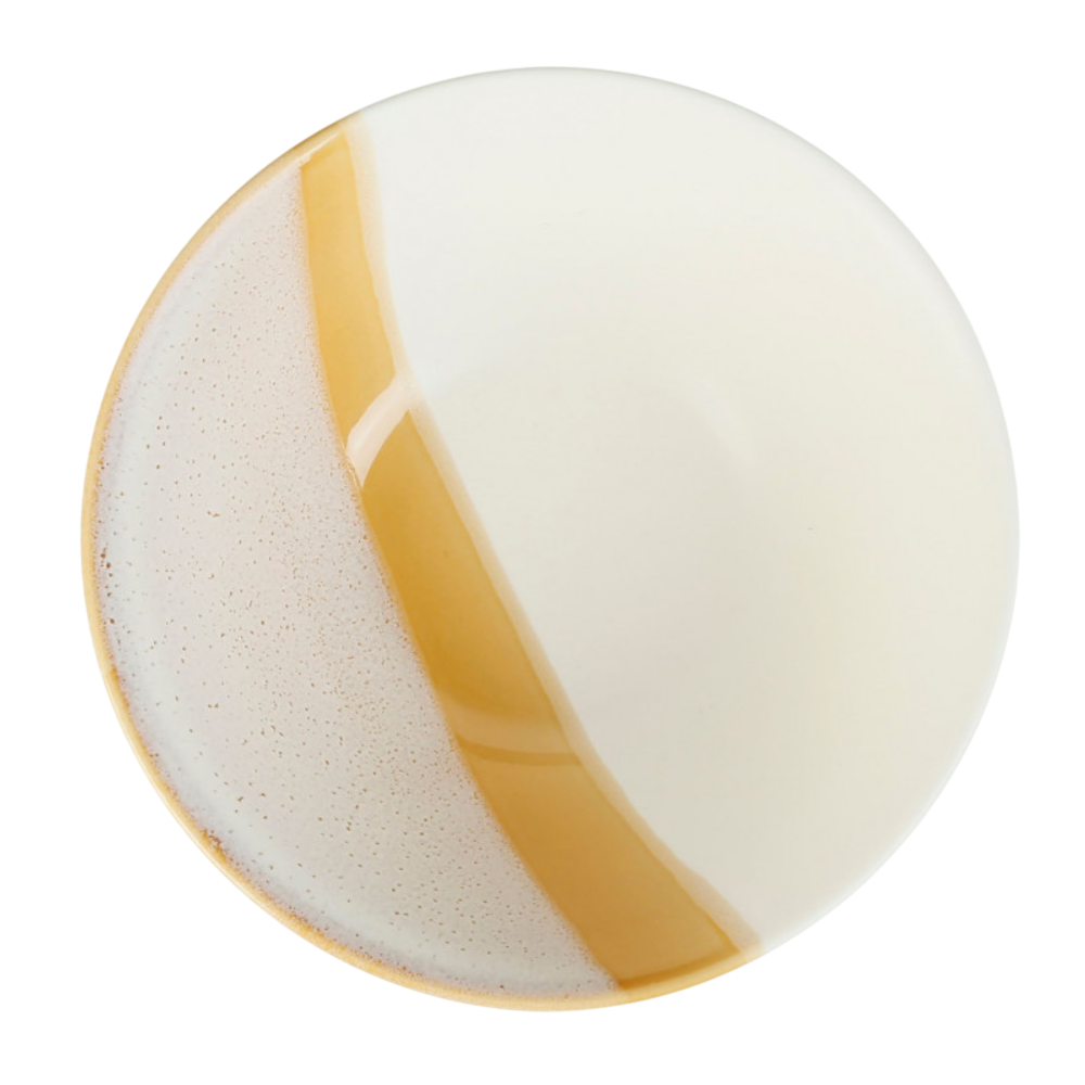 Coupelle bol en grès - Un design sobre et élégant avec cette finition émaillée craquelée, facile à assortir avec votre vaisselle - Pratique au quotidien comme coupelle individuelle pour vos desserts, vos apéritifs, vos veloutés ou pour vos sauces - Matière : grès - Couleur : blanc cassé et jaune - 65cl.