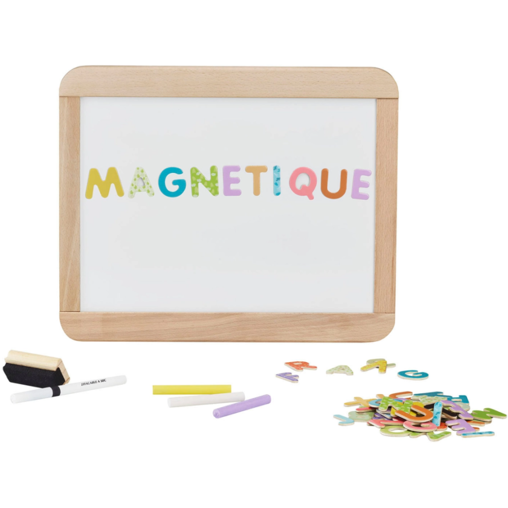 Ardoise Jeujura spécialement conçue pour les écoliers de 3 à 8 ans pour écrire, dessiner ou réviser ses leçons - Fabriquée avec un encadrement en bois de haute qualité pour une durabilité optimale sur le long terme - Dispose de 2 faces : une face pour écrire à la craie, une face blanche magnétique pour feutre effaçable à sec - Livrée avec lettres aimantées, craies, feutre et brosse - Encourage la créativité et l'apprentissage ludique - Fait exactement 37 m de long et 31 cm de large pour convenir parfaitement aux petites mains des enfants - Idéale pour stimuler l'éveil et la concentration des jeunes apprenants.