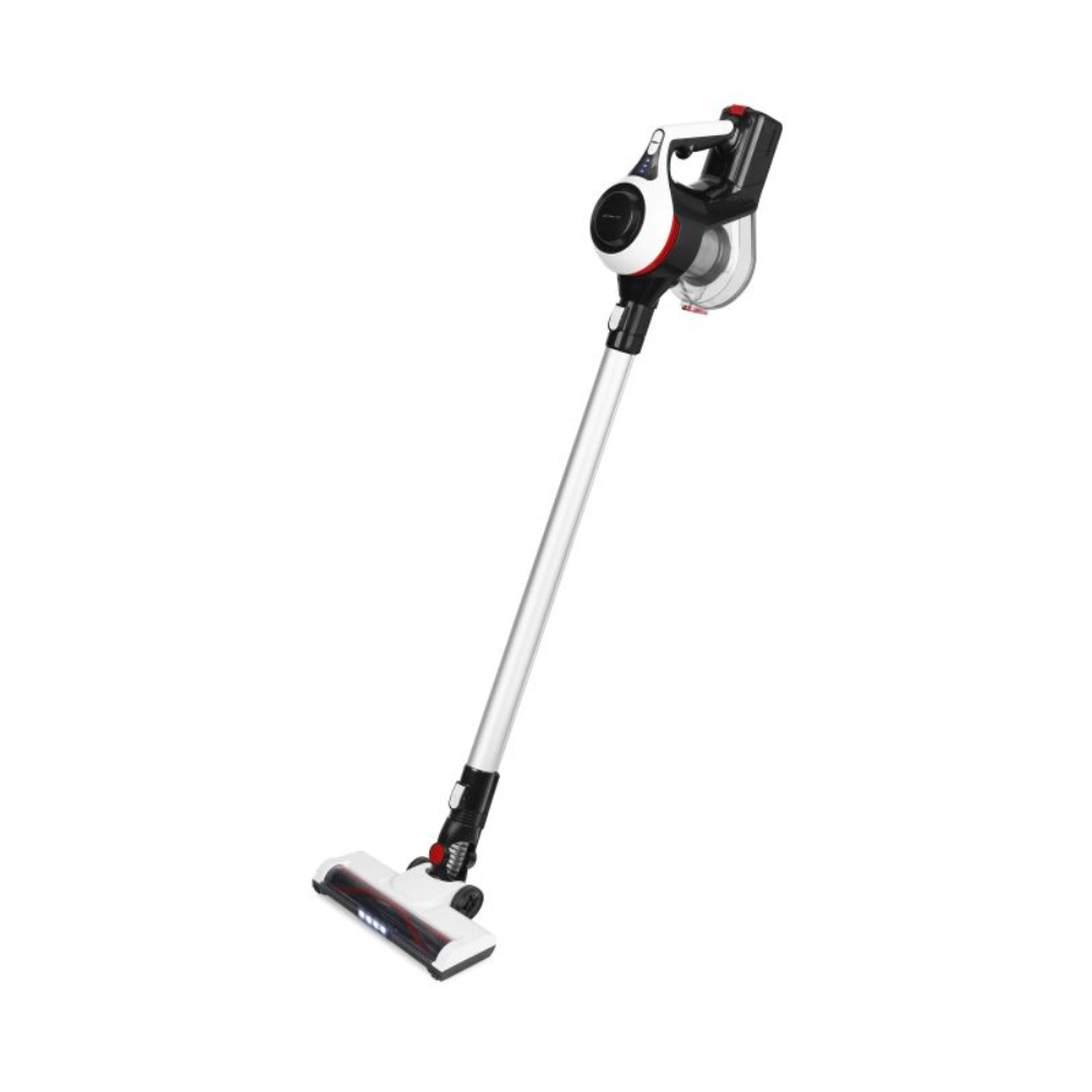 Aspirateur balai - EMERIO UVC-130959 - Rechargeable - Système de gestion automatique de la batterie - Batterie au lithium 2.200 mAh - Moteur CC 22,2 V - Aspirateur vertical et à manche 2 en 1 - 2 réglages de vitesse - bouton Turbo - Brosse motorisée avec lumière LED - Temps de travail 40 min - Temps de charge 4,5 heure(s) - Capacité de poussière 1,2L - 10 KPA - Filtre Hepa H11 - Comprend 1 petite brosse.