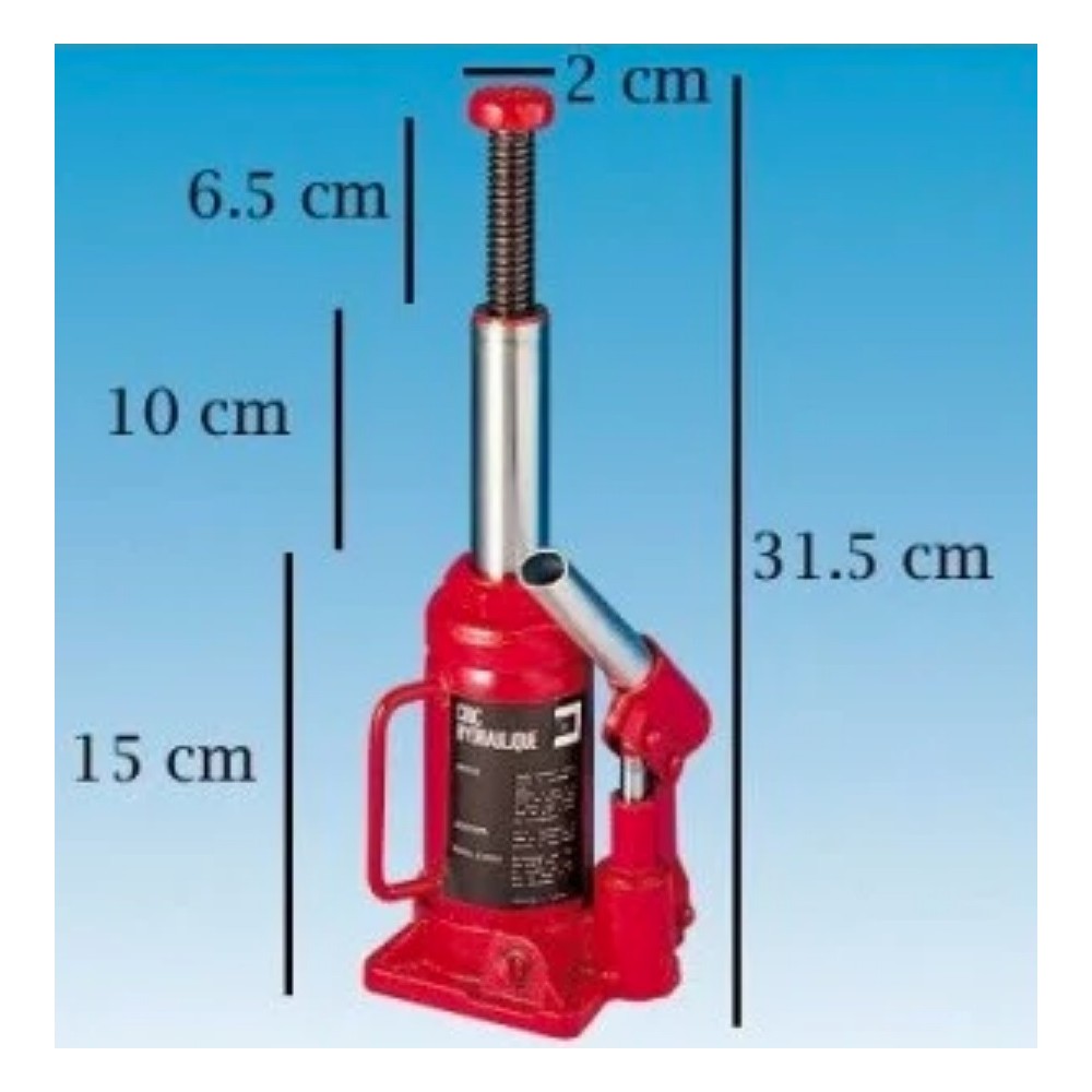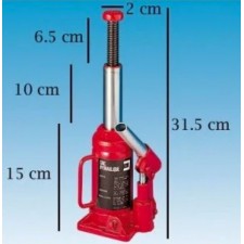 Une force phénoménale au bout d’un simple levier. Pour tous vos travaux de mécanique, de charpente ou de bâtiment. Le cric hydraulique bouteille est un article très compact qui prend peu de place et est facile à ranger. Dimensions : h. 24,4-44,9 x Ø 4,5 cm. Base du cric : 8 cm x 9,5 cm. Matière : Métal. Poids : 10,6 kg environ. Coloris : rouge.
