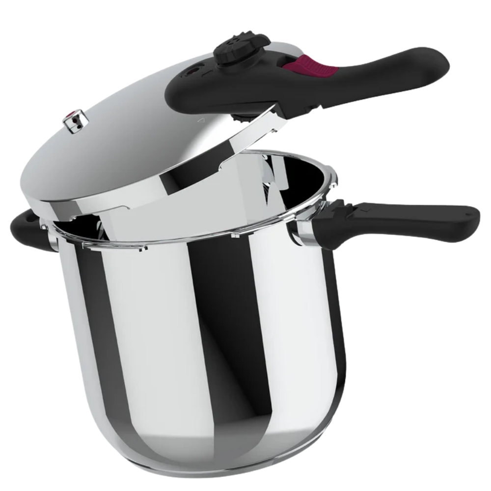 Spiraliseur à légumes SpiralChef 400 intégré de 4 lames en acier inoxydables de différentes tailles pour couper des fruits et des légumes en forme de spirale - Dispose d'un canal d'entrée extra large de 65 mm de diamètre pour les aliments les plus grands - Possède 4 accessoires en acier inoxydable pour couper en différentes formes comme capellini, spaghetti, tagliatelle et pappardelle - Doté d'un grand récipient de capacité 1 litre.