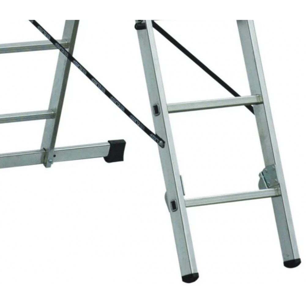 Échelle transformable 2 plans à base rapportée - 2,17 à 3,47 m. Échelle 2 plans à base rapportée pour tous vos travaux intérieurs et extérieurs. Cette échelle transformable 2 plans convient aussi bien pour les professionnels que pour les particuliers. Échelle escamotable de 2,17 à 3,47 mètres de hauteur. La base rapportée de l'échelle assure une excellente stabilité pour travailler en toute sécurité. Informations techniques. Matière : Aluminium et charnières en acier. Dimensions : hauteur : de 2,17 m à 3,47 m. Poids maximum supporté : 150 kg. Accessoires : sangles de verrouillage de sécurité, système d'auto-verrouillage, pieds anti-dérapants. Poids de l'échelle : environ 8 kg.