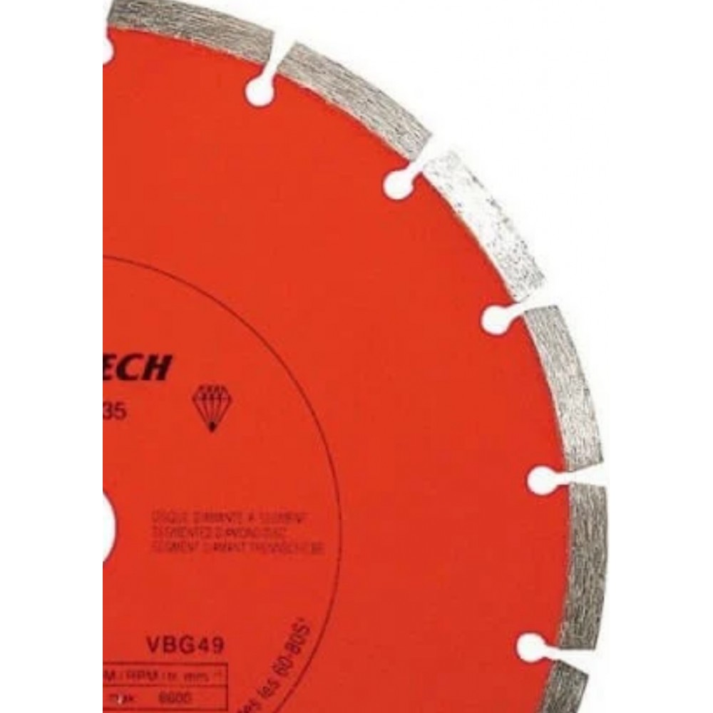 Disque Diamant Segmente 230mm. Spécialement conçu pour coupe rapide de bétons, pavés, briques, bordures, parpaings, etc. Sciage à sec ou humide. Contient 1 disque diamant à jante segmentée. 13 000 rotations par minute (au maximum), 80 m/seconde. Axe intérieur de 2 cm. Diamètre 230 mm.
