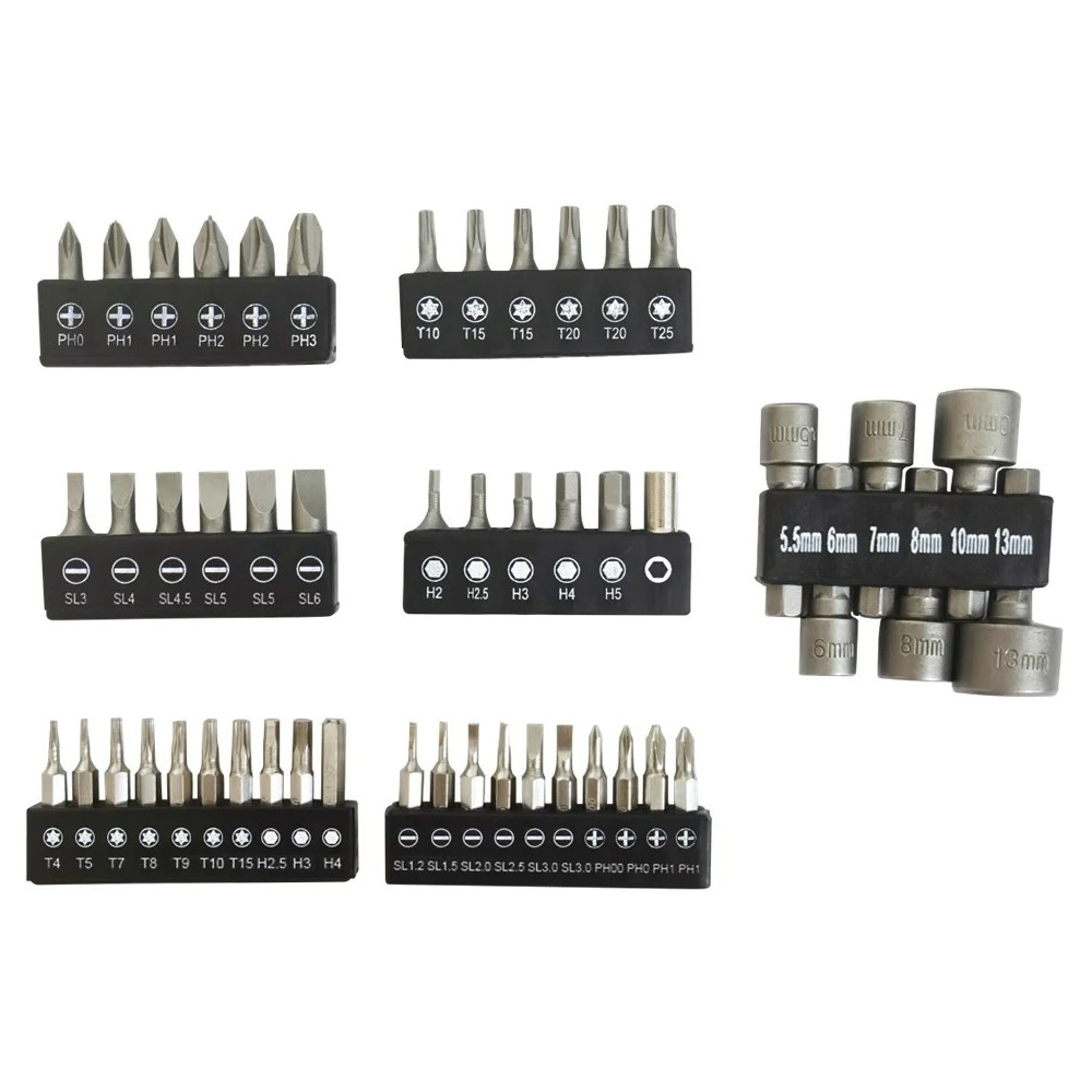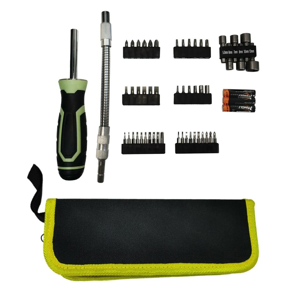 Pratique ! Indispensable - Ce coffret tournevis multi-embouts vous permettra de visser et dévisser toutes les vis - Ce coffret contient 1 housse de rangement, 1 manche tournevis à LED avec outil télescopique aimanté, 1 rallonge flexible, 6 douilles, 24 embouts CRV et 20 embouts CRV de précision - Le manche tournevis équipé de LED vous permettra de visser même dans les recoins d'un meuble - La branche télescopique aimantée sera très utile pour récupérer une vis tombée.