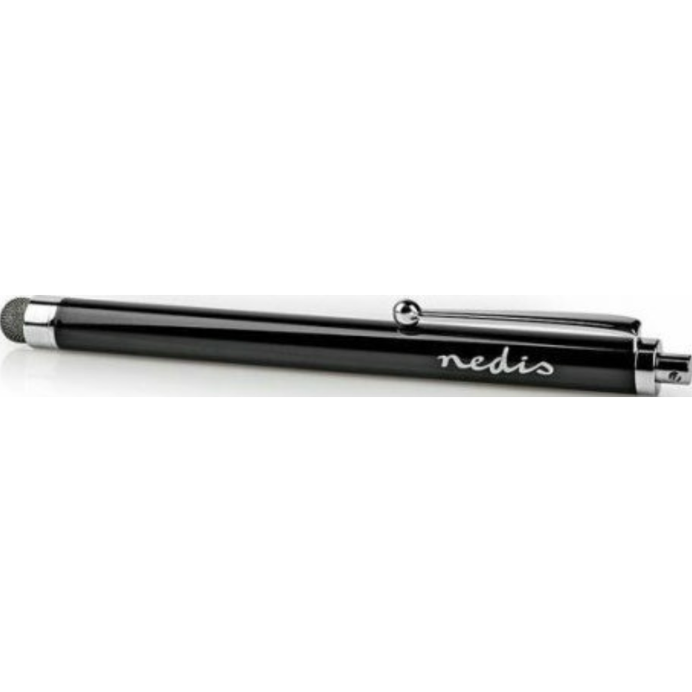 Stylet Nedis avec pointe en tissu de cuivre de couleur noire - Adapté pour tous les smartphones et tablettes - Permet un contrôle de précision - Compatible avec la plupart des écrans tactiles capacitifs et les protège des rayures, taches et traces - Doté d'un clip pratique - Se glisse dans n'importe quel sac ou poche - Stylet très léger, juste 16g.