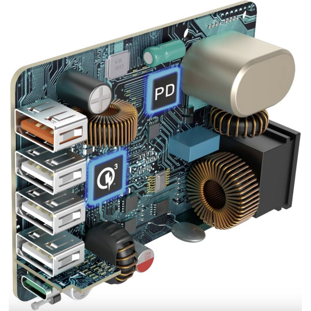 Chargeur Volkano VK-8066-BK GaN - Puissance totale : 120W - 6 ports USB : 3 USB-C PD + 3 USB-A - USB-C PD1 : jusqu’à 65W – compatible ordinateurs portables - USB-C PD2 & PD3 : jusqu’à 20W – pour smartphones et tablettes - USB-A : jusqu’à 18W – compatible avec la plupart des appareils USB - Technologie GaN : haute efficacité, format compact - Sécurité intégrée : protection surtension, surintensité et court-circuit - Format compact : idéal pour la maison, le bureau ou les déplacements - Tension d’entrée : 100-240V (universelle) - Couleur : noir.