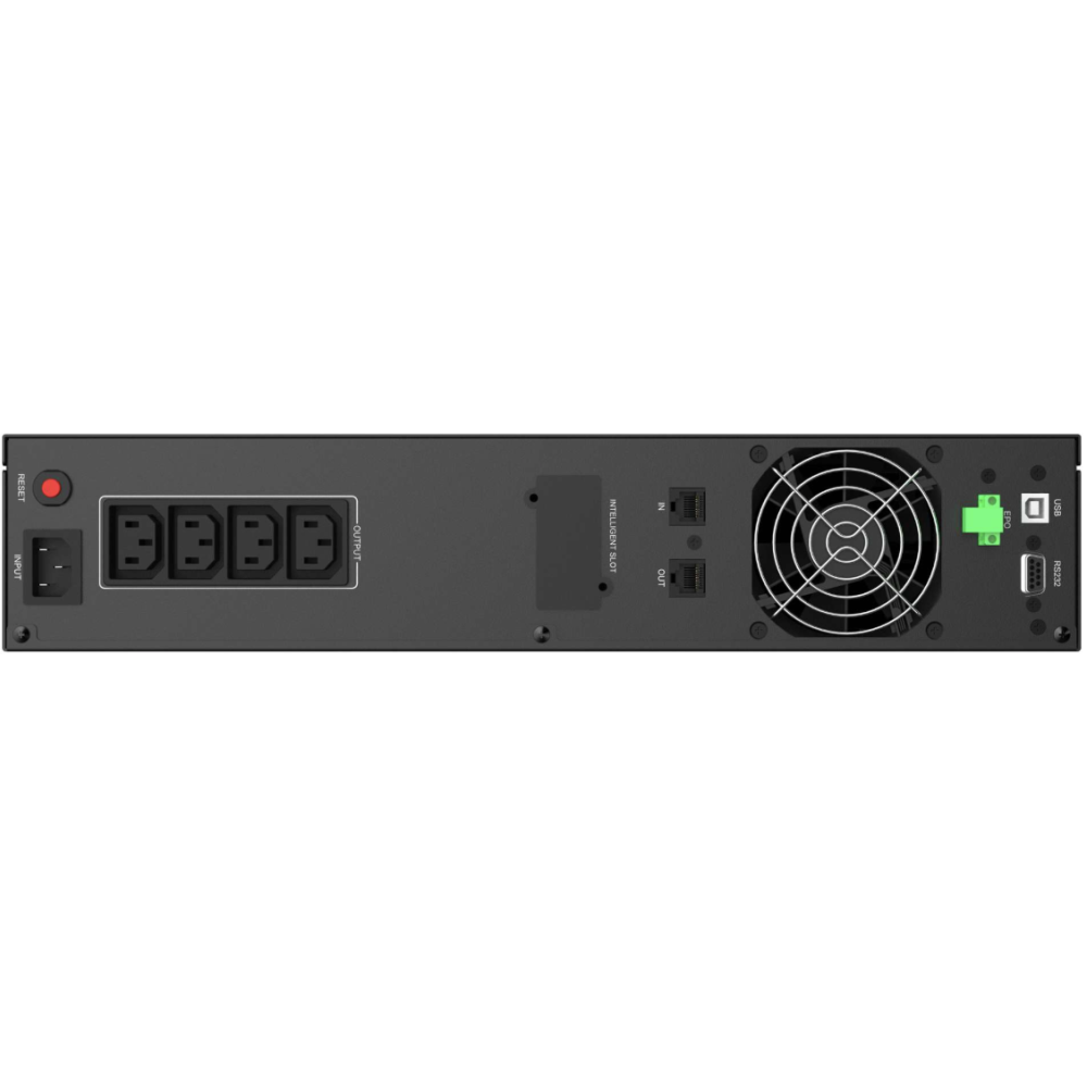 Onluleur rackable PowerWalker VI 3000 RLE (Rack 2U) - Puissance : 3000 VA / 1800 W - Type : Onduleur interactif en ligne (VI), format rack 2U - Sortie : Onde sinusoïdale pure, 230V - Facteur de puissance : 0.60 - Efficacité : 98 % (mode ligne), 80 % (mode batterie) - Temps de transfert : 4 ms (typique) - Connectique sortie : 8 x IEC C13 - Connectique entrée : IEC C20 - Batteries : 4 x 12V / 7.2Ah (autonomie : jusqu’à 7.4 min à demi-charge) - Communication : USB Type B (HID), RS-232, port pour carte SNMP - Logiciel : PowerMaster (inclus).