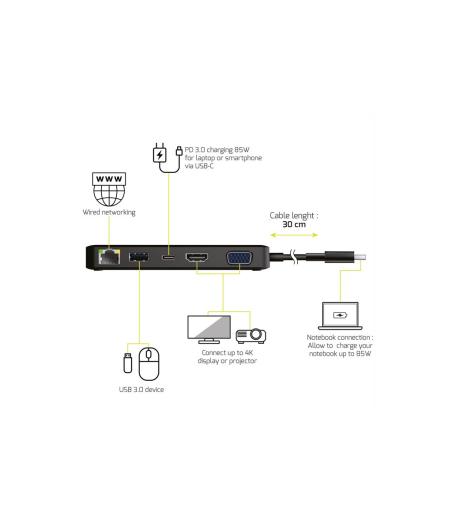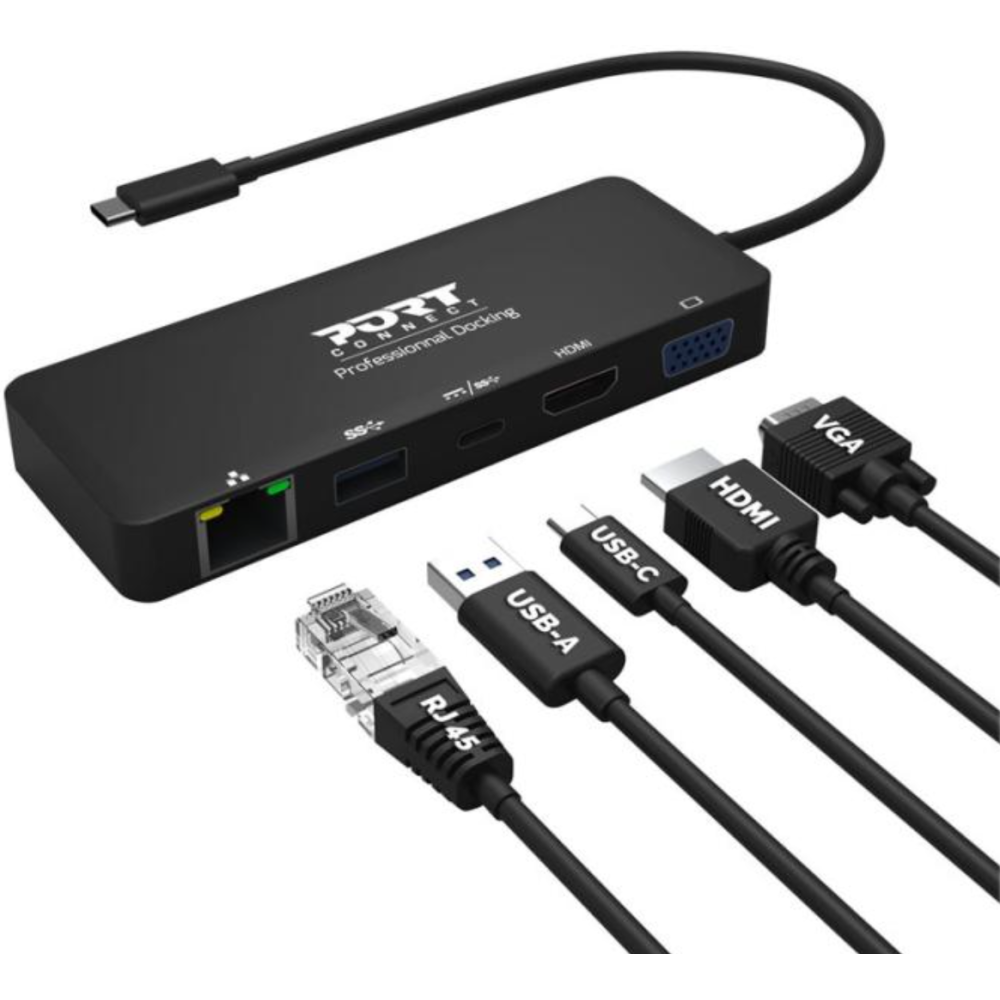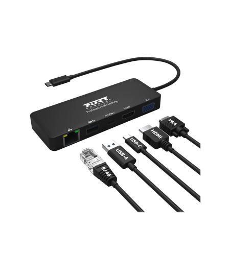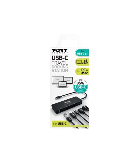 PORT connect DOCKING TYPE C TRAVEL 1 X 4K - Station d'accueil - USB-C - VGA, HDMI - 1GbE