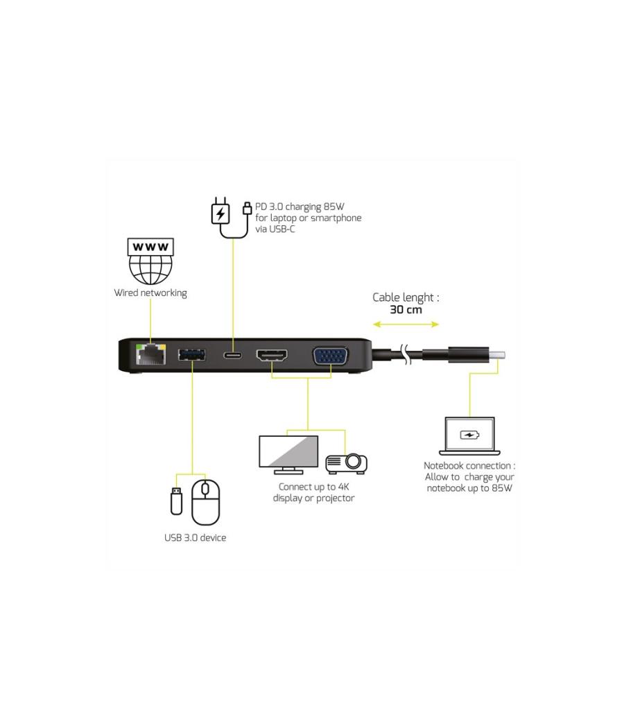 Urban Factory Hubee Mini - Station d'accueil - USB-C - VGA, HDMI, DP - 1GbE