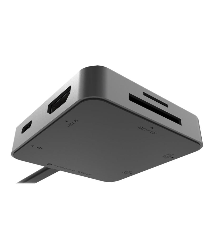 | Cette station mobile USB-C vous permettra de connecter vos périphériques n'importe où et n'importe quand grâce à sa très petite taille et sa facilité d'utilisation. La station possède tous les ports fondamentaux dont vous avez besoin, 1 port USB 3.0 et 1 port USB 2.0 pour connecter votre souris, votre clavier et votre disque dur; 1 port vidéo afin de connecter votre moniteur externe en HDMI 4K (30Hz). Pour terminer, vous pourrez brancher vos cartes mémoire au format SD et MSD et, si votre ordinateur est alimenté en USB-C, vous pourrez directement brancher votre alimentation externe à la station pour recharger votre ordinateur (jusqu'à 100 watts). |