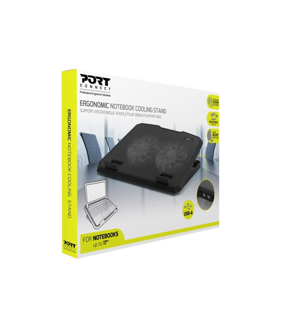 PORT Ergonomic Cooler Pro - Ventilateur d'ordinateur portable - avec concentrateur USB 2 ports - 17" - 140 mm